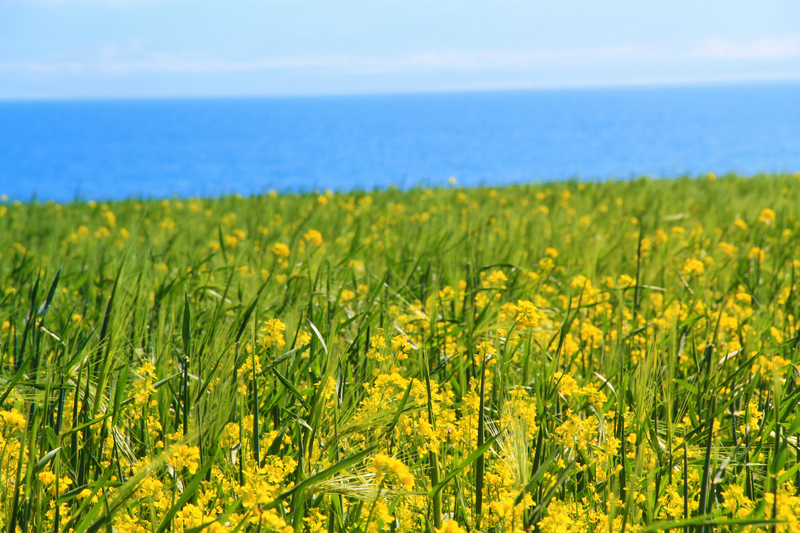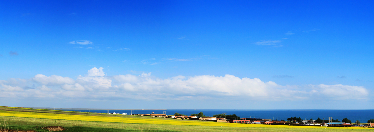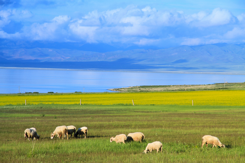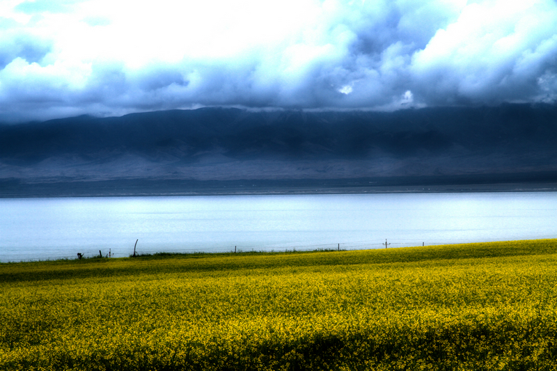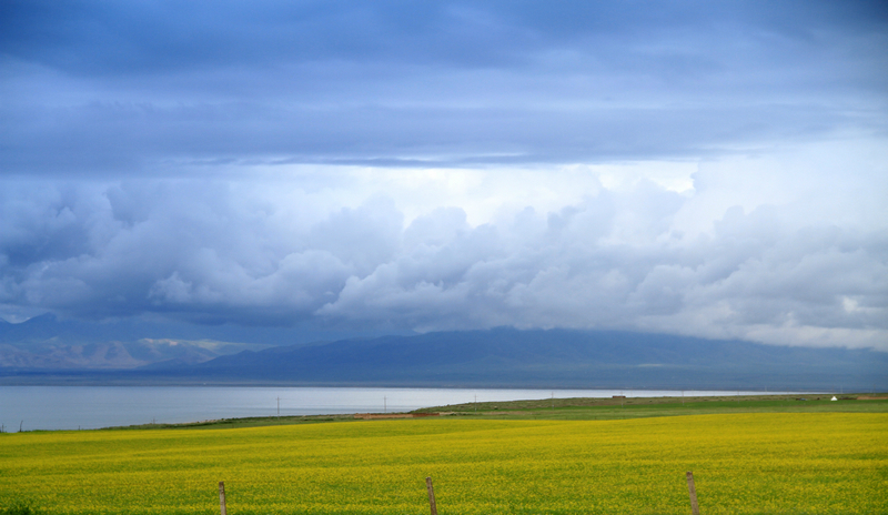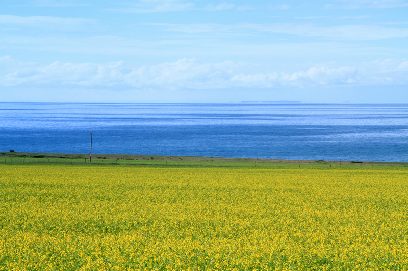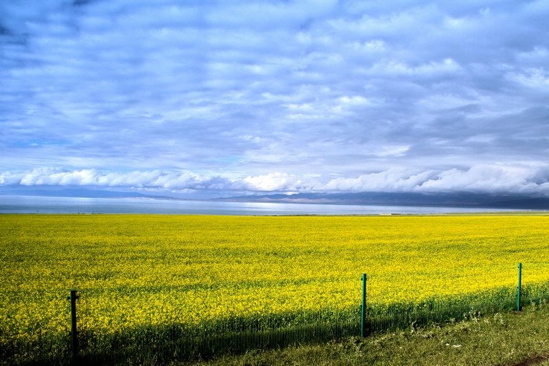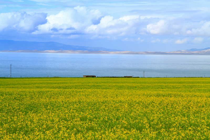 【这些就是油菜花和青稞夹杂,以青海湖 为背景】
