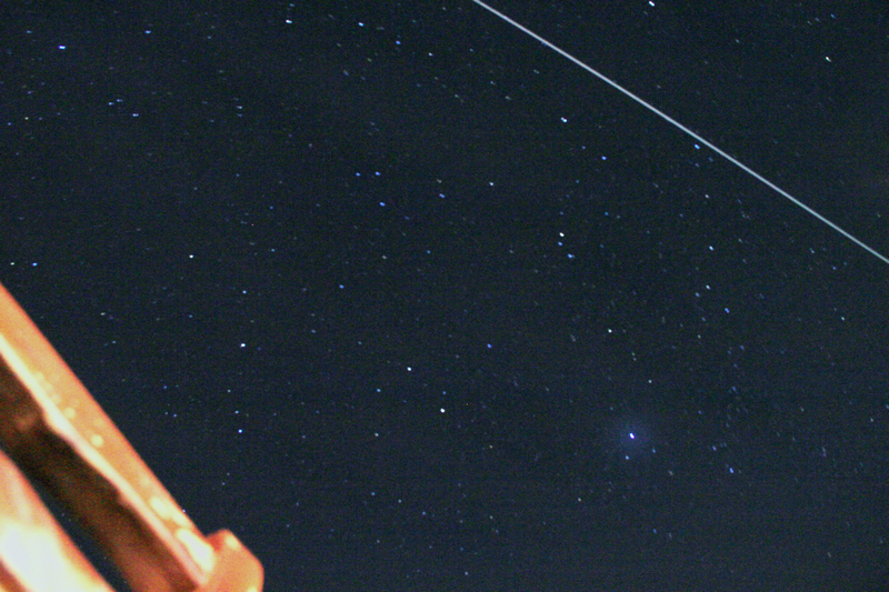 【没有三脚架,只能把相机放在椅子上朝上而勉强拍得一张。拍不到北斗 七星,小小遗憾。现场比照片壮丽。】