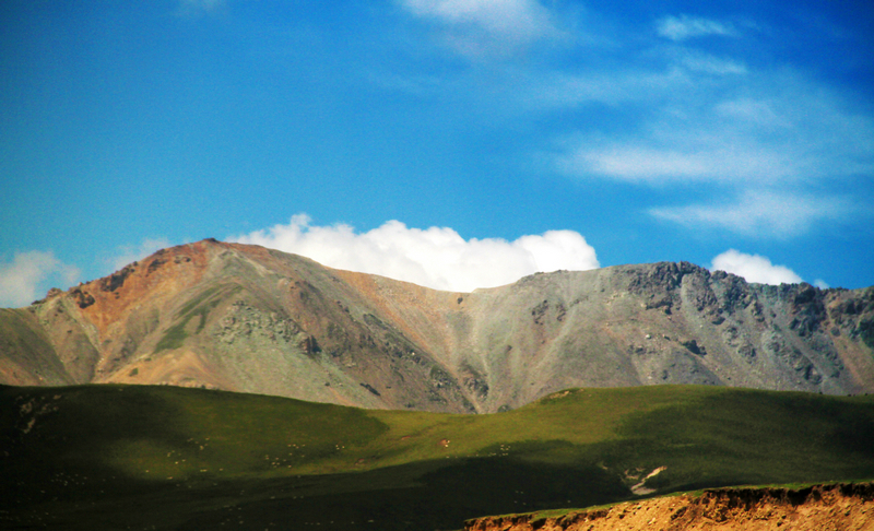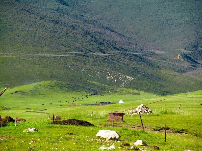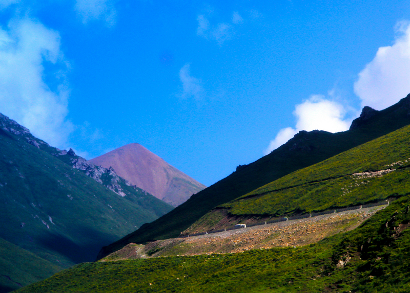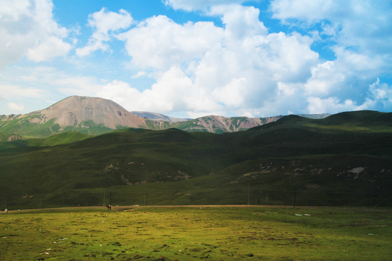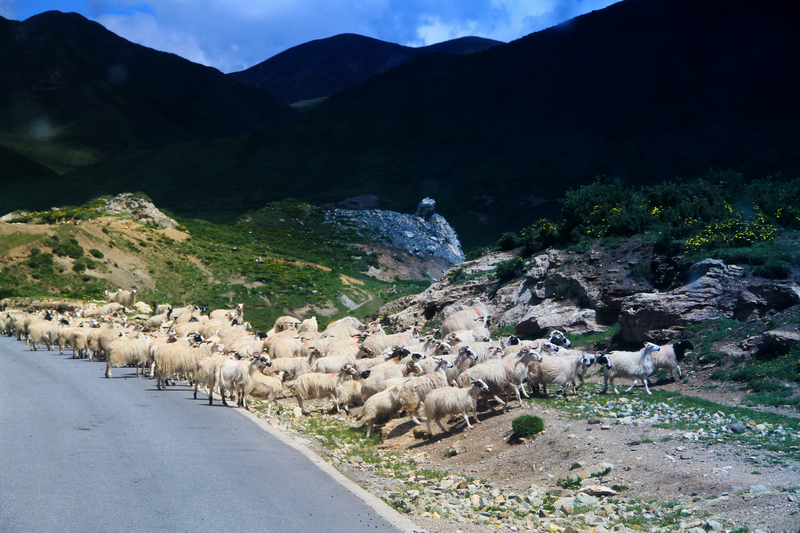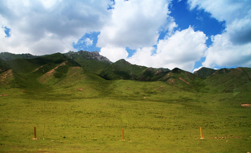 离开门源 ,班车途径一个叫峨堡镇的小地方。过了峨堡镇就算是翻过祁连山 ,到了甘肃河西走廊了。在海拔接近4000米的祁连山 盘山 公路上,雪山时隐时现。成群结队的白羊彷佛才是这里的主人。越过草原上,爬过山坡,穿梭于星罗棋布的游牧民族帐篷毡房,六小时后我们到达了目的地张掖 。