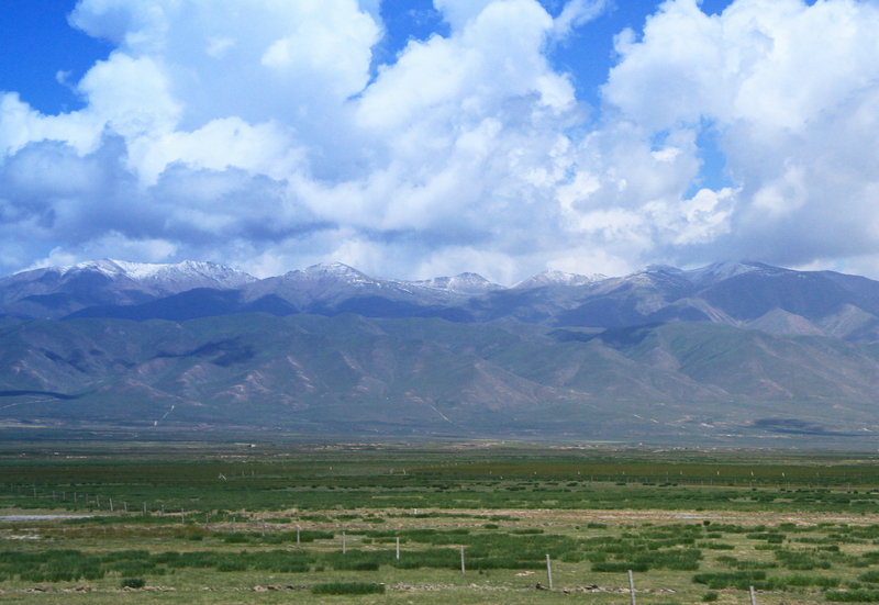 妈妈很厉害,把票价从50大洋砍到35,师奶的功劳。我记得昨天的伯伯说过,路上能看到雪山。我一直留意车窗外。果然,还没出青海湖 地区就已经看到了。这是我第一次看到雪山,尖尖的雪顶。一直举着相机高速连拍,生怕错过。不知名的雪山10分钟后离开了我的视线。然而,在距离西宁 还有一小时的路程时,车窗外又出现了雪山,也不知是不是同一座。虽然少了青海湖 的蓝色衬托,但是片片花田也拼凑出宁静安逸。