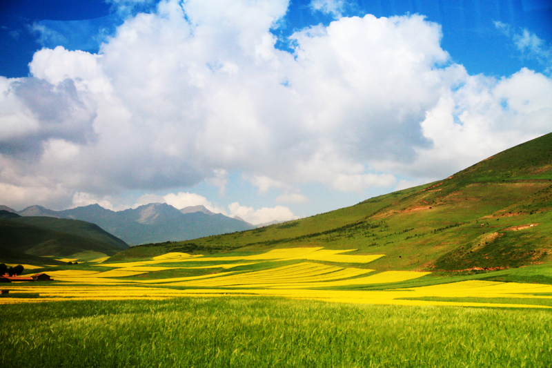 手机开着GOOGLE地图,寻找去塔尔寺的公车站。走了差不多半小时,终于在管理站坐上了公车。塔尔寺在西宁 的一个县城里,离市区25公里。坑坑洼洼的公路旁,是七零八落的油菜花。初窥油菜花,小兴奋。大片的油菜花和小麦田在窗外飞逝,黄绿相间。高原的油菜花盛开在七月。颠簸了一个小时后,到达了塔尔寺。