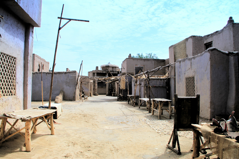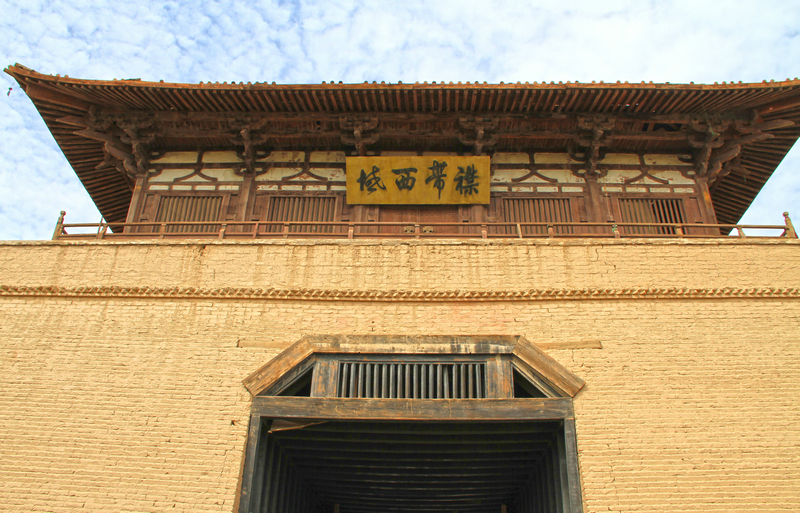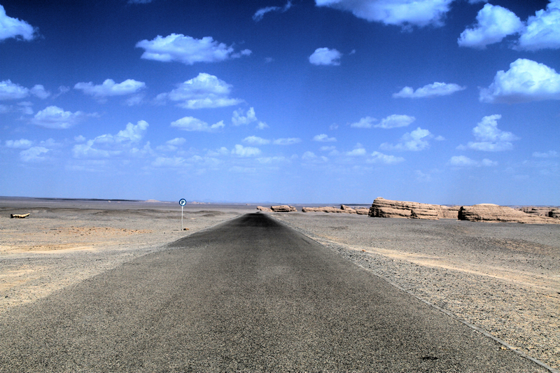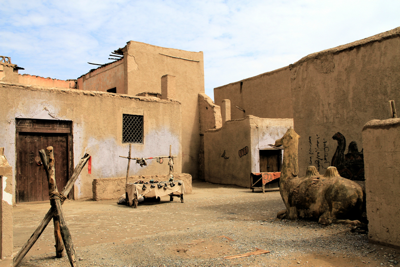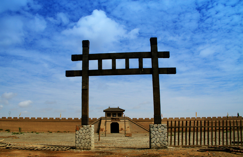 去雅丹的路上,人烟稀少,大漠荒芜。眼前只有一条笔直的公路,就像一个无人区。敦煌 影视城是途径的,我完全没兴趣,只不过是一场来到就去瞧瞧。一堆仿古建筑,就算模仿得再惟妙惟肖,缺少了历史赋予的内涵,就只是一堆垒砌的泥巴而已。拍了些到此一游的照片,就撤了,往玉门 关奔去。