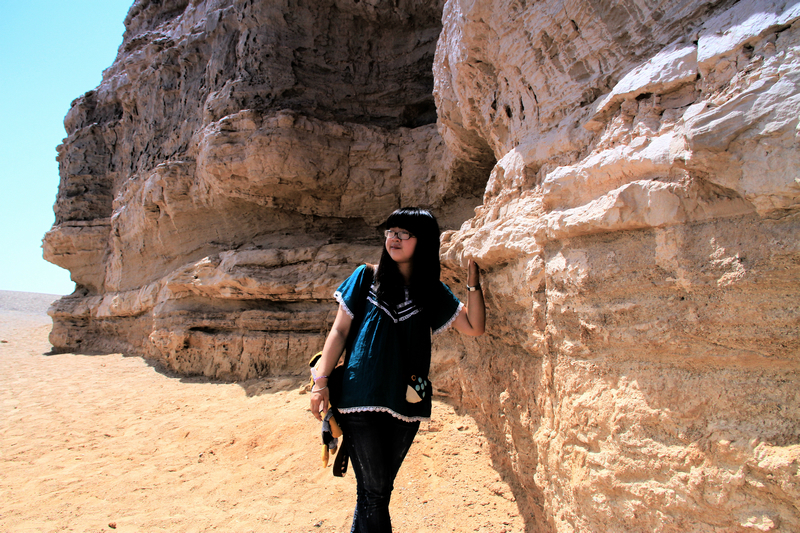 汽车继续在路上行驶了一个小时,终于到了魔鬼城雅丹。雅丹地貌,是属于罗布泊 地区的一部分,风蚀孕育了这片地区的千姿百态,包括西边60公里处的楼兰。楼兰,我也曾在高三的试卷上默写过“黄沙百战穿金甲,不破楼兰终不还”。雅丹地质公园也是需要乘景区观光车游览的,每一个造型都被称为一个“雅丹”。下午的雅丹是炽热的,即使穿着布鞋,也能感受到黄沙的热气。