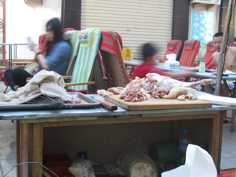 安顿后,晚饭。由于地理位置不错,我拿着手中的吃货攻略,穿梭于莫家街和水井巷,寻觅于清真餐馆与地道小吃之中。作为一名吃货,我秉着少量多尝的原则,战略性地吃。可是,西宁 着实让我大吃一惊。这是我饮食条件最差的一站,没有之一。西宁 无食肆乎?骚,骚,骚!一尝传说中的“无皮鞋”家庭酸奶,骚得我无法下咽(更贴切的应该是就像广东 话的“一阵酸馊味”);一盆半斤的手抓羊肉,母女俩怎么也无法想象竟是一堆类似白灼羊肉的模样。只有烤羊肉烤牛肉还行。虽然不合口味,但不得不提西北 的食物分量非常大,两人吃一份面就完全足够了。唉,吃货表示很失望。