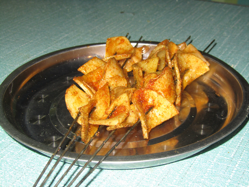 都说雅丹的日落是绝美的,但是我们的时间配合得不好。离开雅丹时只是下午4点,距离日落还有5小时,只能作罢。回到国际青旅,已经7点了。洗漱后外出觅食。感谢天感谢地,感谢命运让我们相遇。遇见敦煌 夜市,是吃货最美丽的意外!敦煌 夜市,看着各种小吃,吃货贪婪的特性原形毕露。烤肉,烤蔬菜,烤馕饼,xj大盆鸡,椒盐羊肉,冰冻啤酒!!!!老板,全给我上,除了啤酒= = 开玩笑咩,人在外地,保持清醒的好。