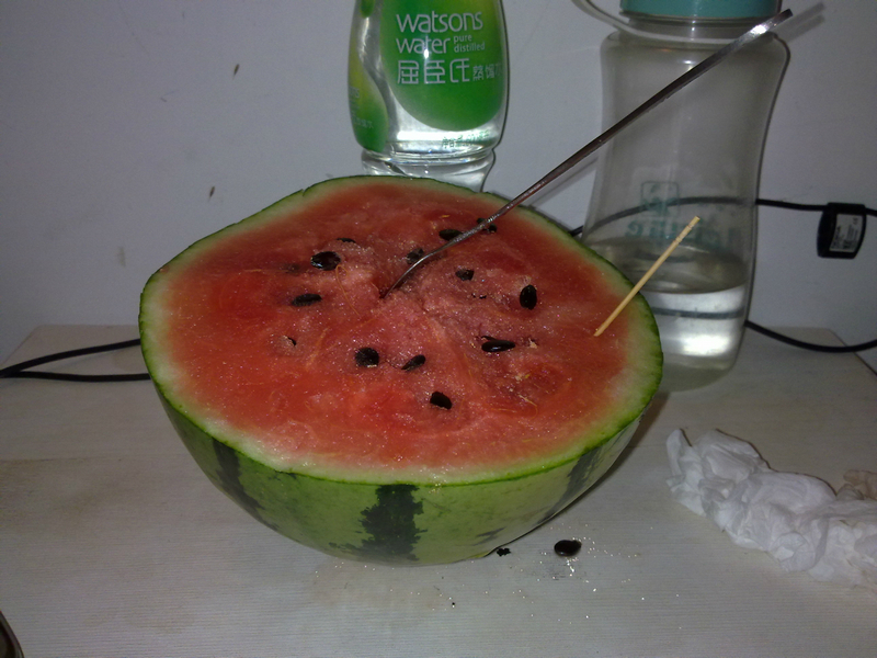 回旅舍的路上,买了一只小西瓜和李广杏。我终于明白,为什么我的新疆 舍友每次在广州 吃西瓜都说一点甜味也没有。今天才知道,比起西北 的西瓜,广东 的西瓜算跟毛线!没有冰冻也这么甜,不得了!!!! 顺便说一下,敦煌 距离xj哈密 ,只有一个火车站。所以我有理由相信,敦煌 的哈密 瓜一定都系甜都漏!回到房间,因为明天要去鸣沙山,所以装备一下相机。听过了太多人把相机毁在沙漠的经历了,所以我对鸣沙山,不敢掉以丝毫轻心。