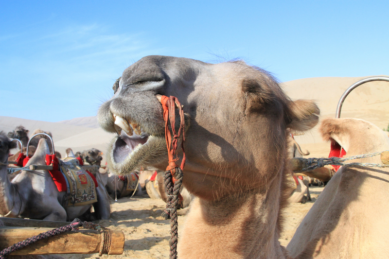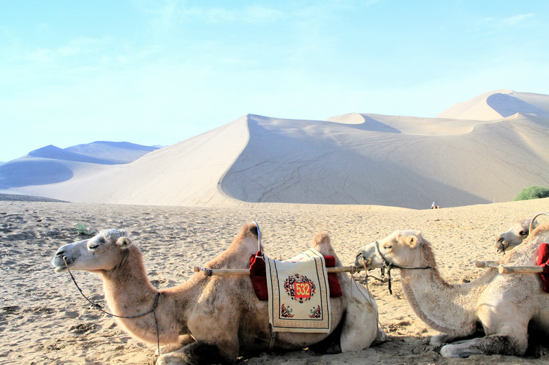摇晃了1个小时数后,骆驼在月牙泉边停下。