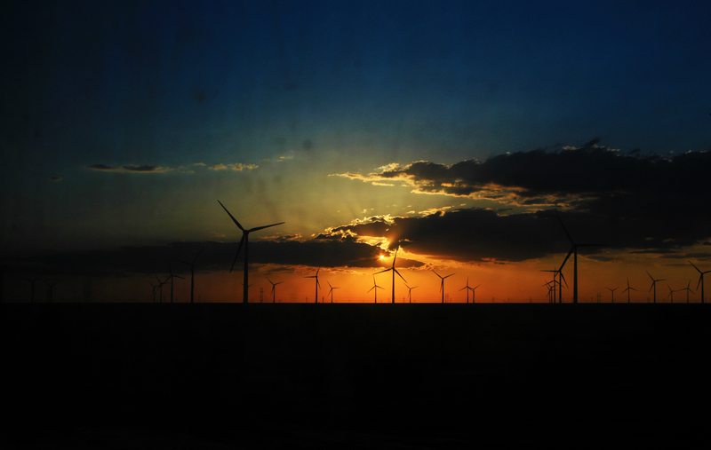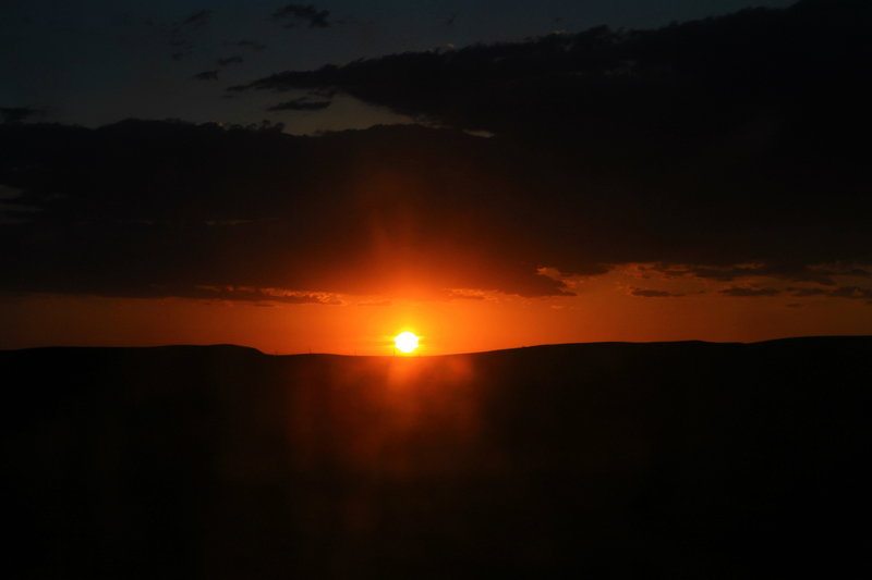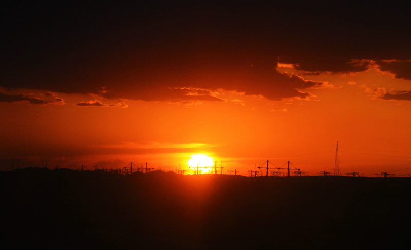 卧铺车厢内,形形色色的旅人三三两两地交谈着,有初相识的,有一家老少出游的。晚上8点多,途径风车阵,我突然想起日落,躺在中铺的床上问坐在窗边妈妈日落了没。妈妈说,现在准备了!我立马滚下床,抓起相机准备。我在西北 的运气,真的很不错。这是我看过最壮丽的一场日落。请想象,苍茫的戈壁滩上,在规则地伫立着风车方阵中,长河落日圆。天边的云彩染成一片渐变色的晚霞,落日熔金,暮云合璧,醉美西北 路。唯一可惜的是,车窗太脏了。