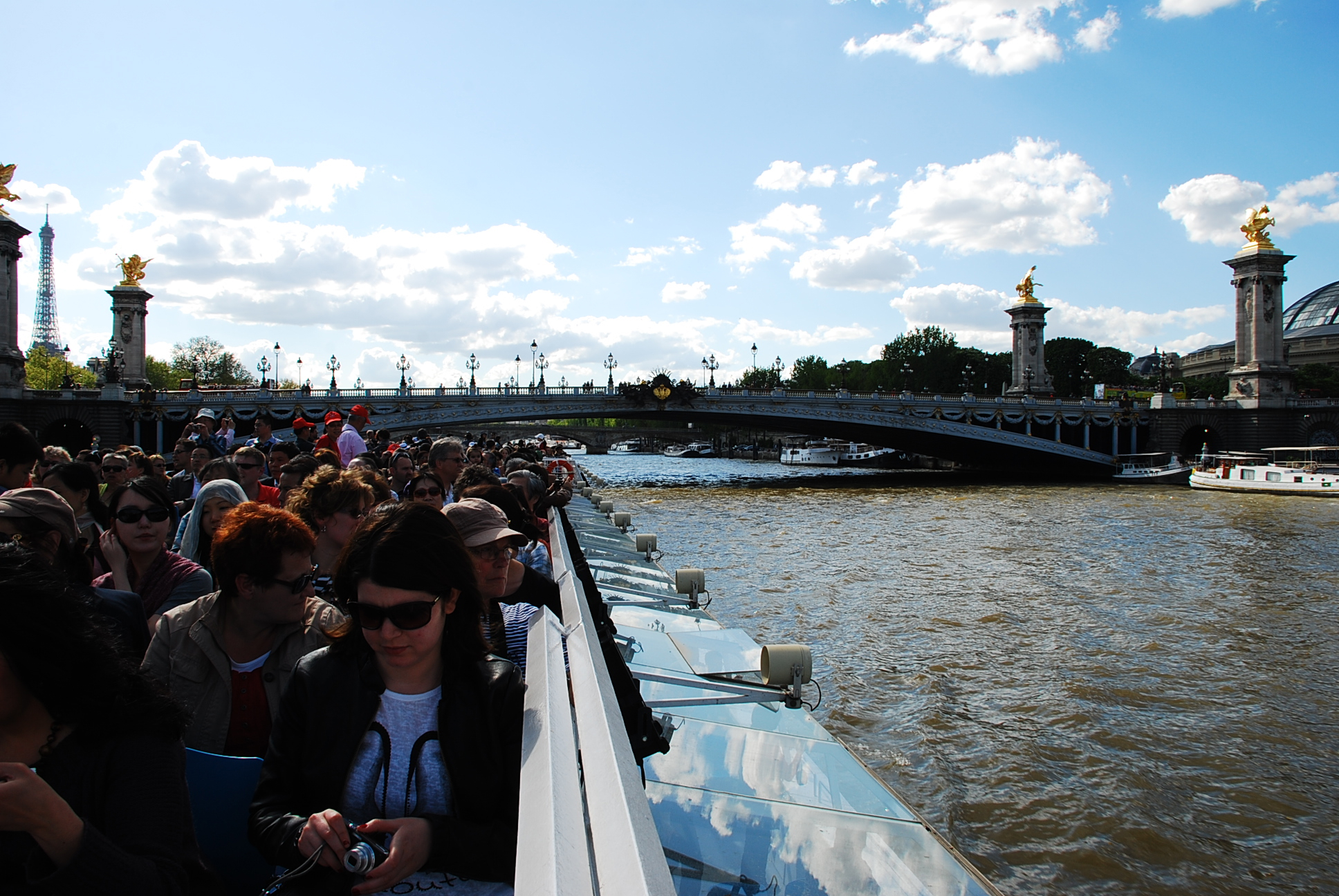 第二天早上,我们就在酒店门口见到一个精干的帅小伙子微笑地招呼我们上车,导游又高兴了,又是意大利 司机,不是法国 人就好。这个帅哥司机很随和,有一个晚上我们去香榭丽舍一个以青口出名的餐厅吃晚餐,打包了一锅给他,他可开心了,第二天买了糖果回敬,礼尚往来,促进中意友谊纵深发展。我想,他意外的接到这个团是幸运的,不是每次都有人请他吃青口吧,而且我们加了许多自费项目:埃菲尔铁塔(后来因排队的人巨多而改为蒙帕纳斯大厦)、赛纳河游船、法国 大餐、红磨坊歌舞表演,最后还到老佛爷血拼。法国 佬知道可能要吐血了呀!哈哈哈!