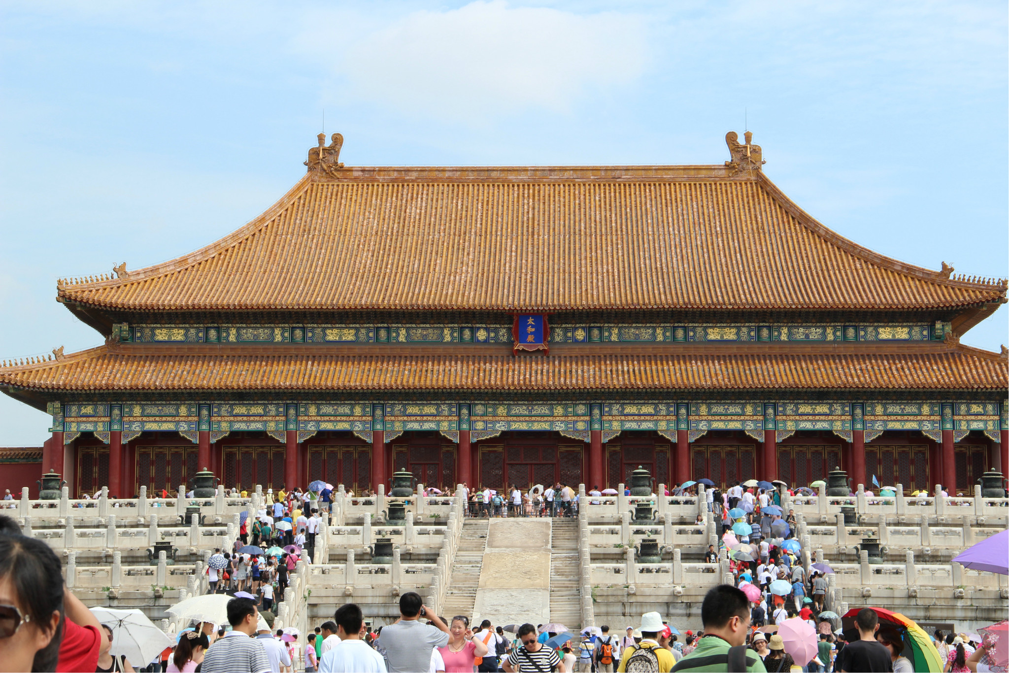 一直以来,故宫是我梦想着要去的地方,还记得去年暑假去横店影视城的时候,因为2比1的关系,明清宫苑我没能去成,所以此次前去故宫我是特别兴奋,可是事实总是不能让人如愿,我们也就在故宫的中轴线上一路走到了头,后宫什么的都没能去成,也许是故宫开放政策的缘故,也许是旅行社安排的指定线路,对此我感到不开心,呵呵,至于对故宫的热爱这个也许可以理解成穿越剧看太多了~要知道我在家没事儿就会看看《故宫》十二集大型纪录片呢。