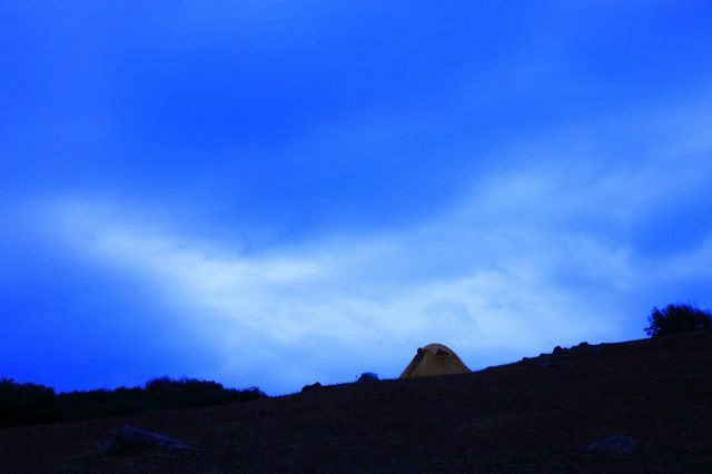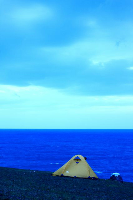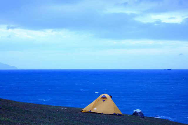 我愛這七級的風,所以勘查許久,終於找到風口。搭營,暴露在風中的便是我這頂被幾個女人當作景點一樣,貼身拍照的帳篷。女人不是比男人浪漫,而是比男人更能找到浪漫。