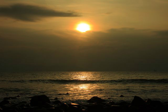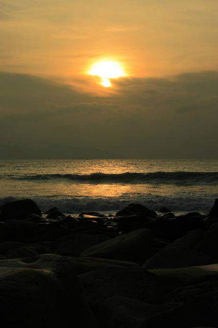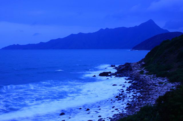 一輪彎月在風來雲往里患得患失。在雲開霧散的瞬間,星星列隊成河,眨眼含笑,嫵媚了絲綢一般的夜。遠處,以前越夜越精彩的墨魚船可能因為強風的關係沒有出現。今夜,就剩下海浪在月影余光里翻騰著白色的袖子,與風嬉戲。嬉戲的還有一個默默站在岸邊懸崖上的孤影。