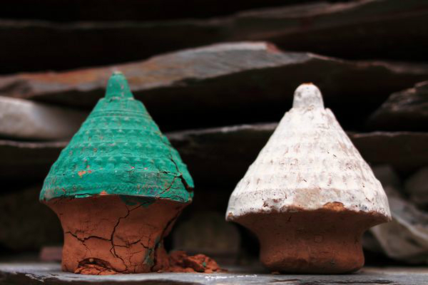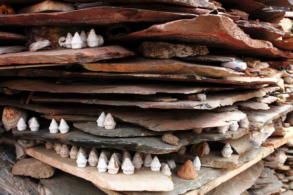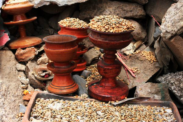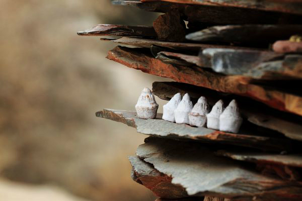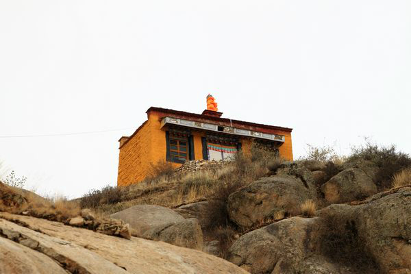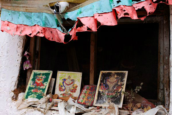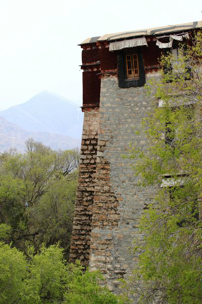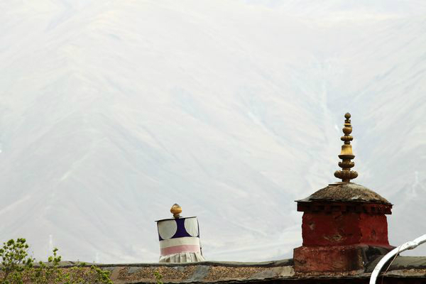 抬頭,半山寺廟踞于色拉寺之上,經幡飄飄,白色梯形移影換形。青稞在弱散的余光里停留,與塔形的髮相伴,風雪日夜。