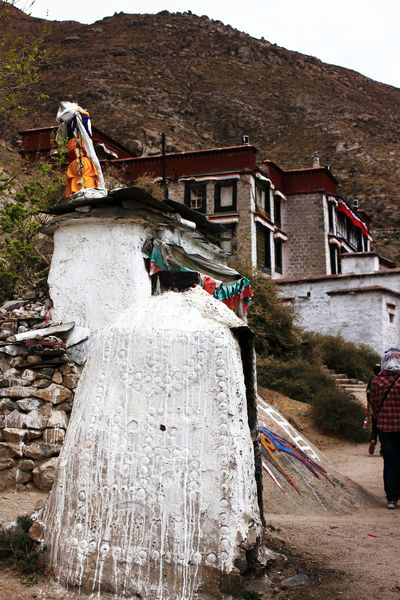 關於色拉寺,他和老蘇并未進去,連事先擬好的觀“辯經”(有人用“聽”,可是他聽不懂,所以斟酌之後,用了“觀”字,以示自知之明)只是繞著寺廟順時針轉了一圈,照片卻出奇的拍得多。未進,除了誠心未決,還因為缺少攝影的光線。
