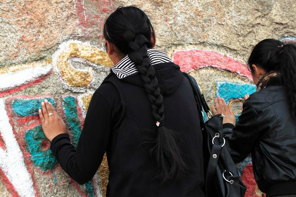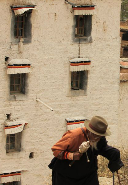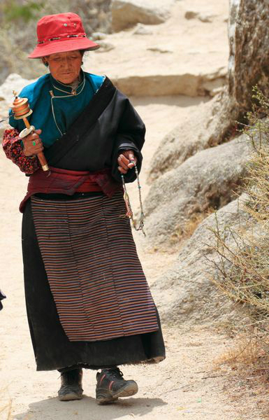 虔誠的信眾搖了一路的經筒一路緩行,腳步堅實,心態悠然。一聲“扎西德勒”,必以憨厚的笑顏回應。