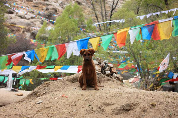 其實連貓狗的表情似乎也在辯經之日里經過精心打扮,隨意而為。一隻居高臨下的黑狗宛如新華門的衛兵,任他如何請求合作拍攝,眼珠也不轉。倒是著地的貓兒和一對黃兄弟,作著多變的怪像和姿勢,在這天地裡率性演出。