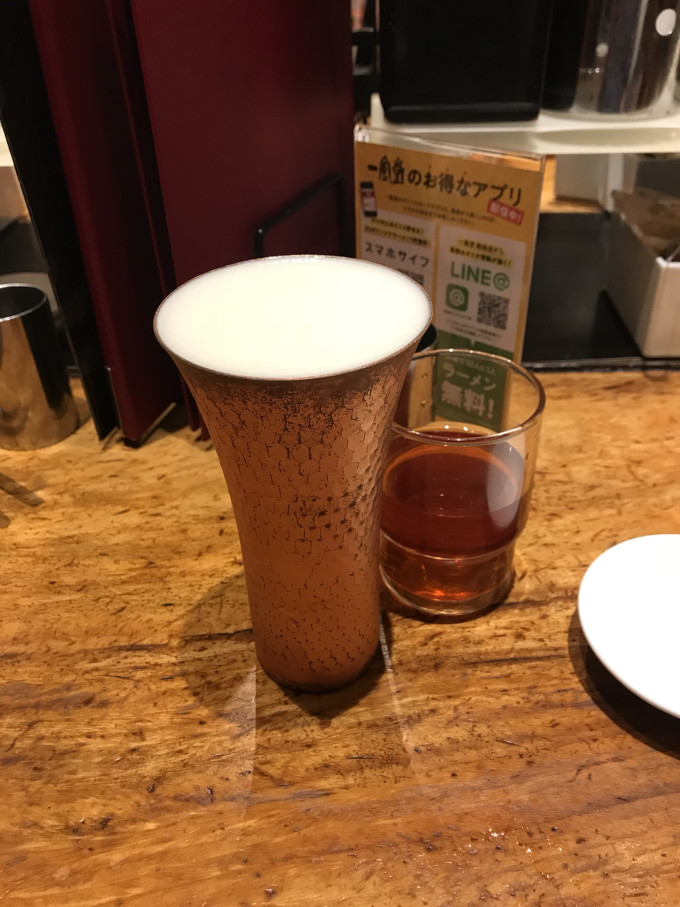 室内的温泉温度偏高,木池子挺深的还,浸在温泉里抬头看着屋顶和墙面上那岁月的痕迹,别有一番滋味。温热的泉水将前两天东京的寒意一扫而空,趁着热乎劲来一瓶冰啤酒,怎一个爽字了得
