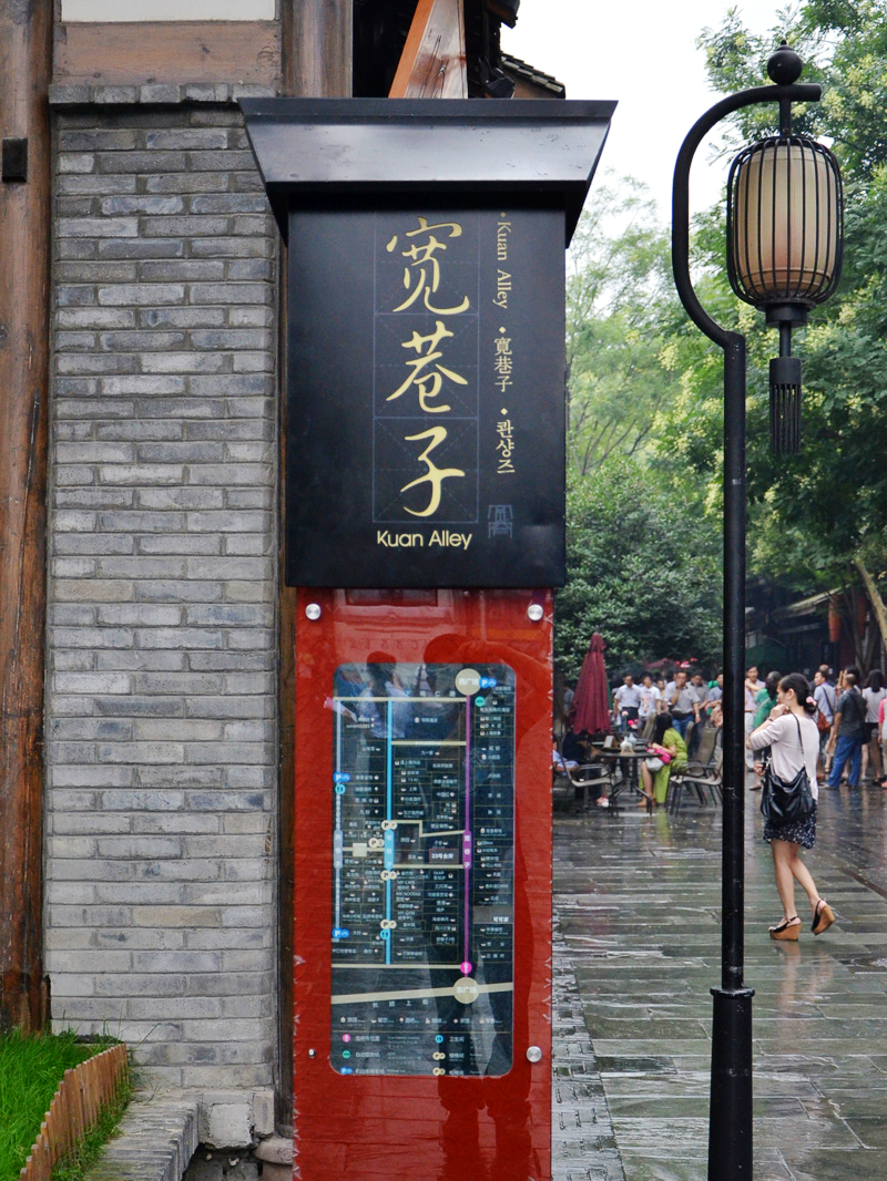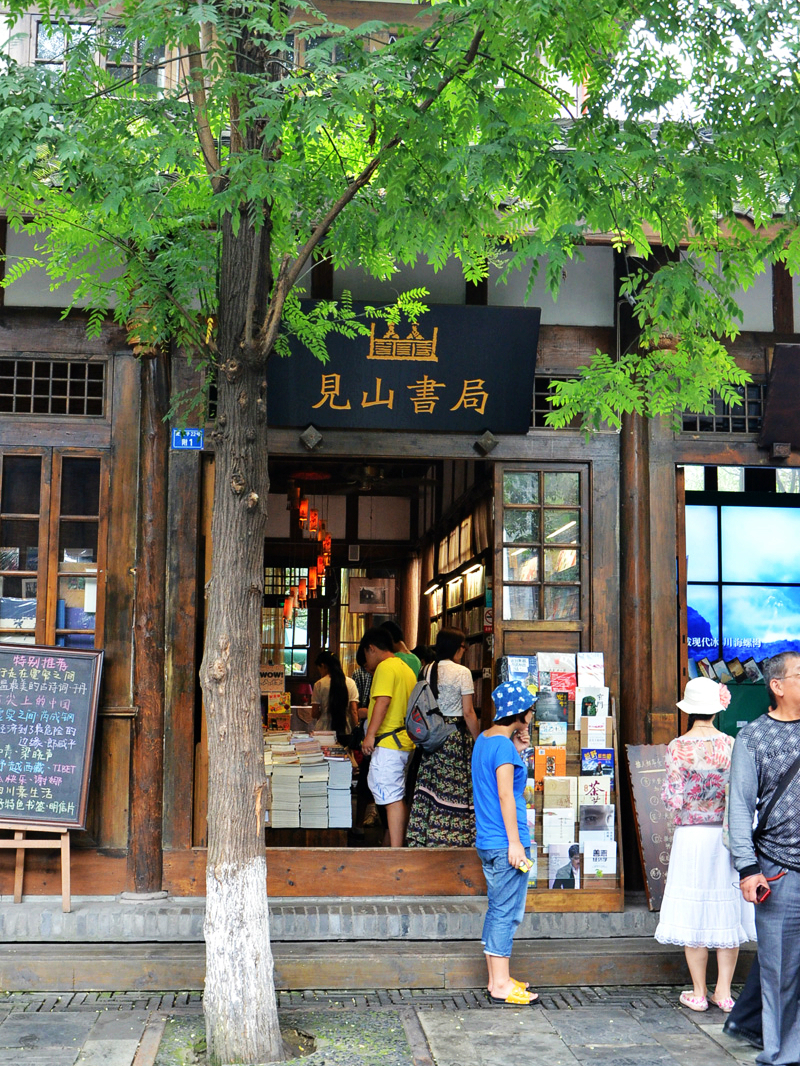 因为有《时代》杂志的“成都,最中国”之先,也变有了“宽窄巷子,最成都”这样的城市名片。一处中国人觉来很时尚,境外人看来很中国的两条街。据说有很多名流在此开店,而我只是走马观花的游荡,只是后来听说而已。没有麻将,没有馆子,没人摆龙门的巷子怎算最成都。特意去找一处叫“象形书坊”的传说中很文艺的小书店,未遂,颇为失落。