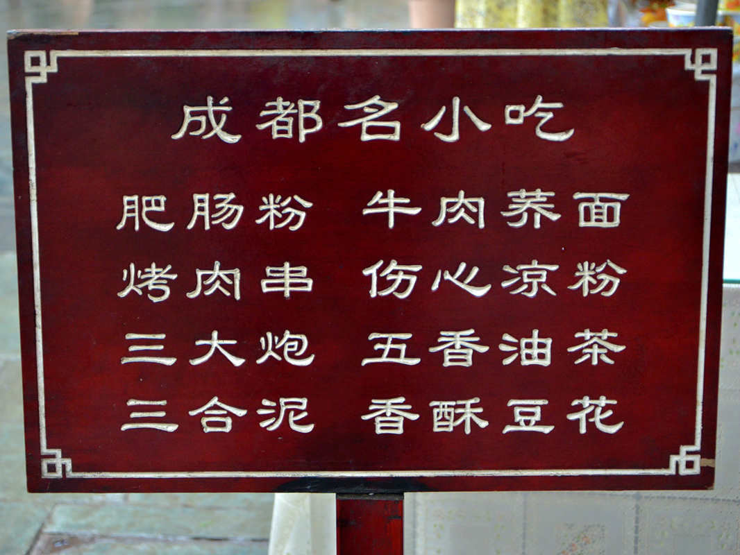在成都的第一天,不得不提的是特意寻找的午餐,慕名而点的诸多名食,口感都不尽人意,这是出草堂时的事。反倒是在去草堂的路上,因走过站,而阴差阳错的吃的一家“白记”肥肠粉到是十分的爽口,让人回味。美食在民间,苍蝇馆子才最有成都味。
