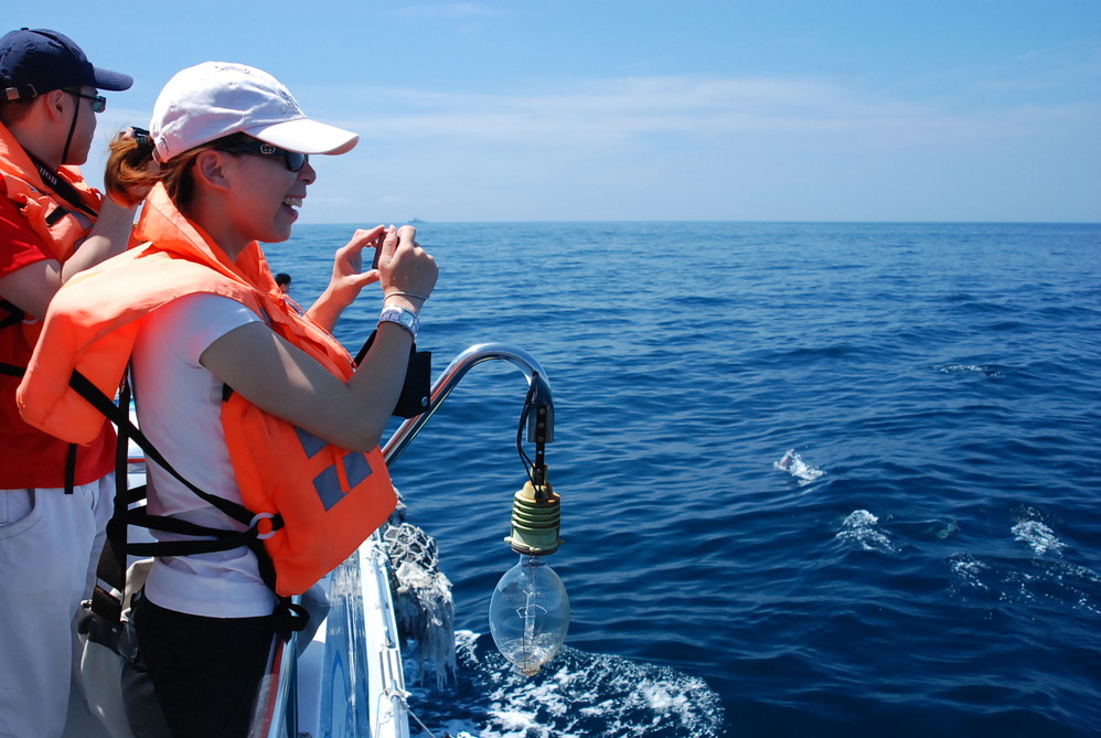 讓我們尋找海上的精靈去吧!!其實, 不用我們尋找, 船家目前是聯營, 先由一艘出海, 以聲納尋找海豚的蹤跡, 找到後再以無線電呼叫, 通報友船經緯度, 以確保遊客不會敗興而歸, 目前如願以償的機率, 至少在95%以上.