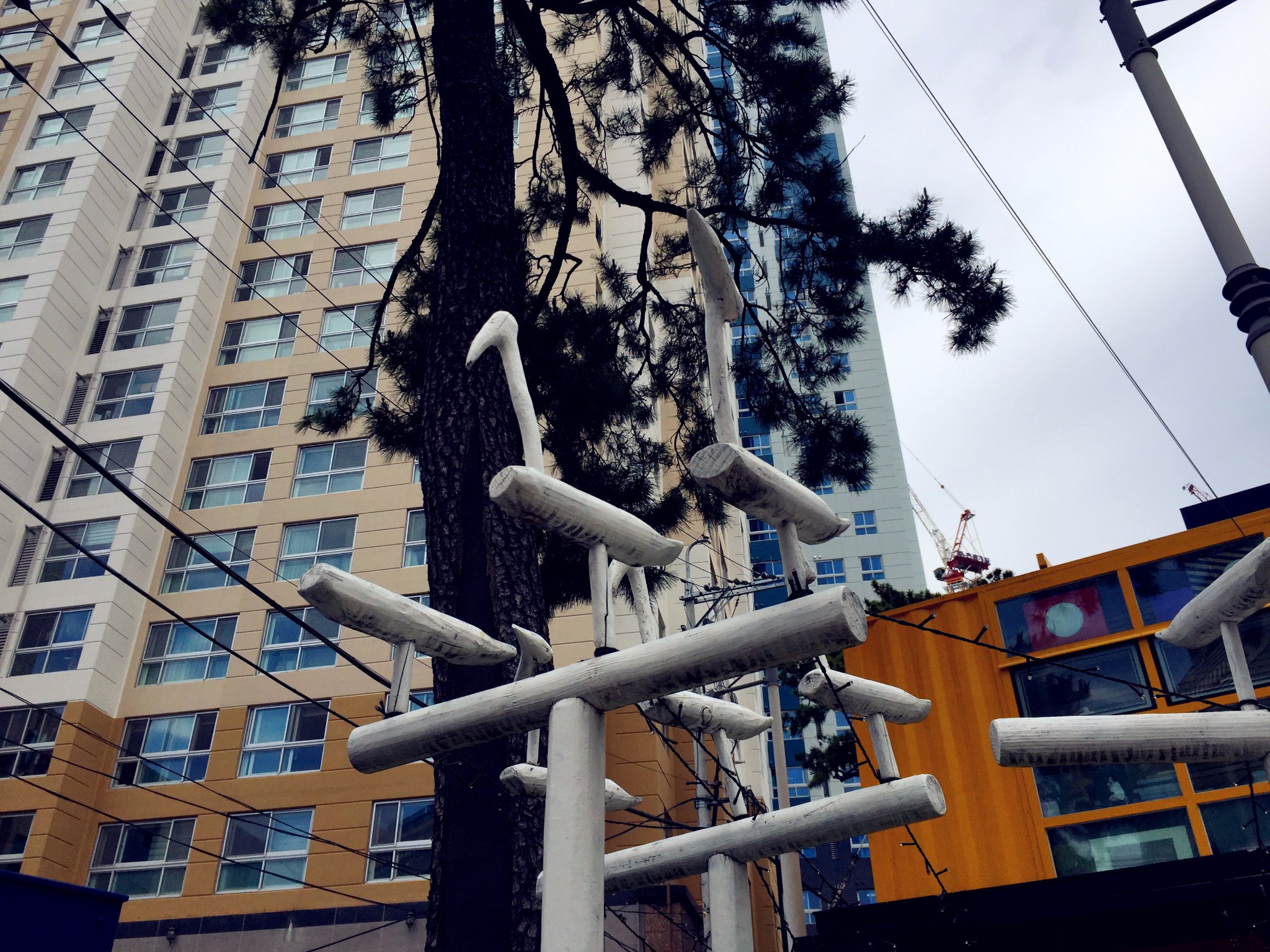 海云台是有地铁直达的,非常方便。当我来到海云台地铁站的时候,第一件事不是寻找这个著名的蓝蓝大海。而是先探寻在海云台的另外一个颇为小众的小景点——松林艺术村。