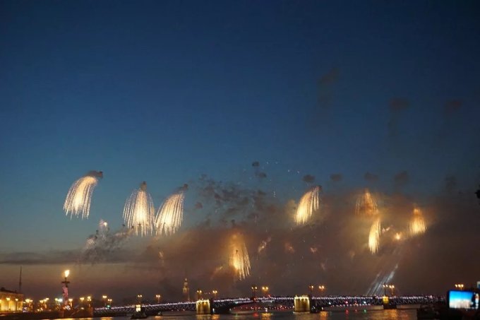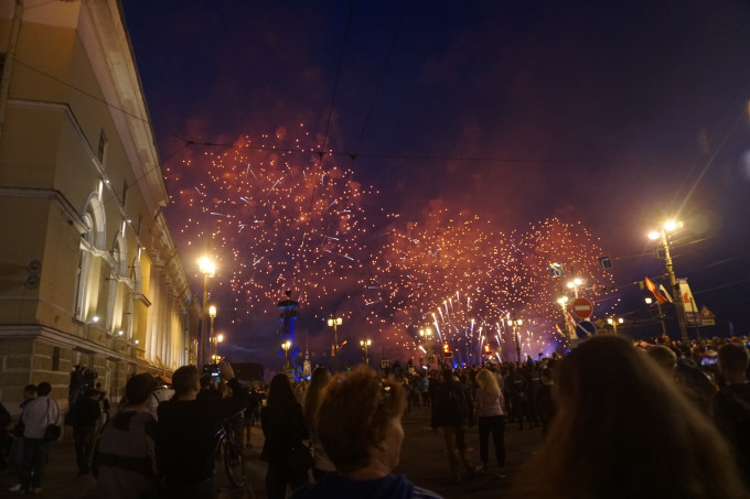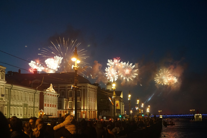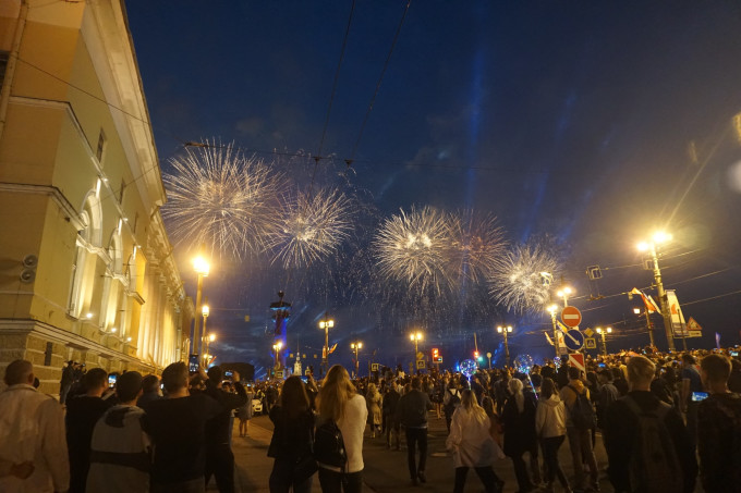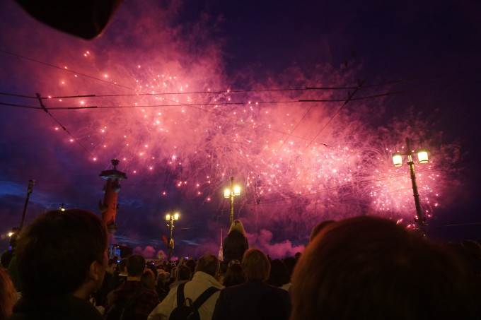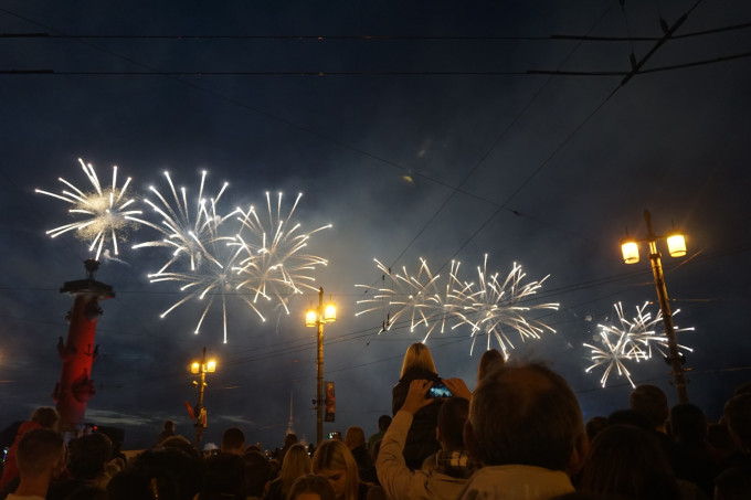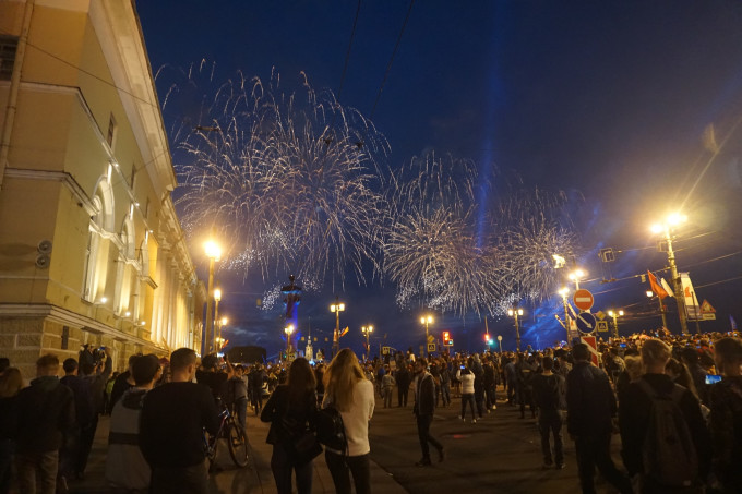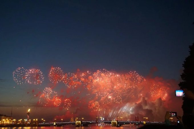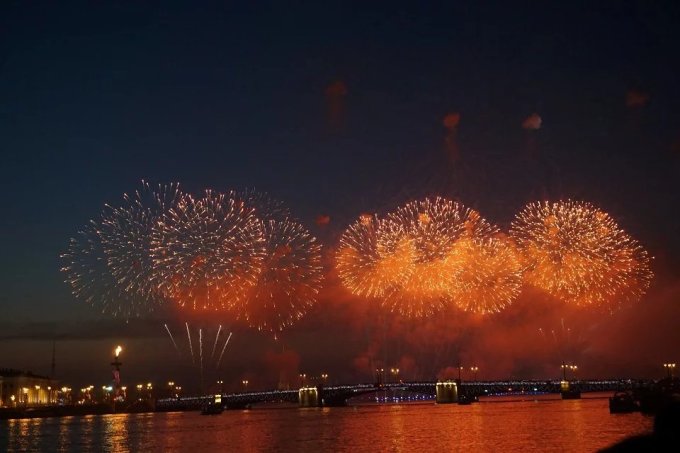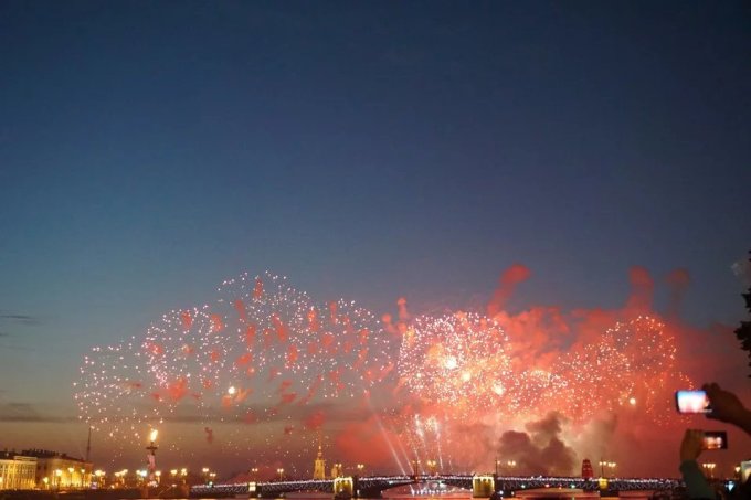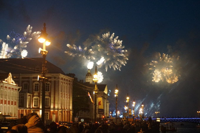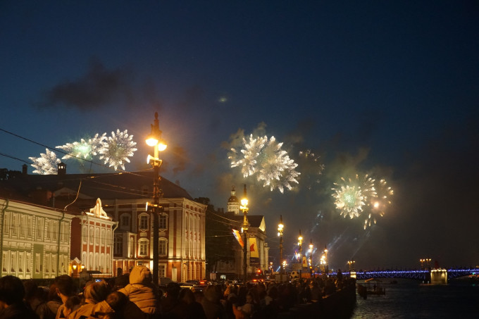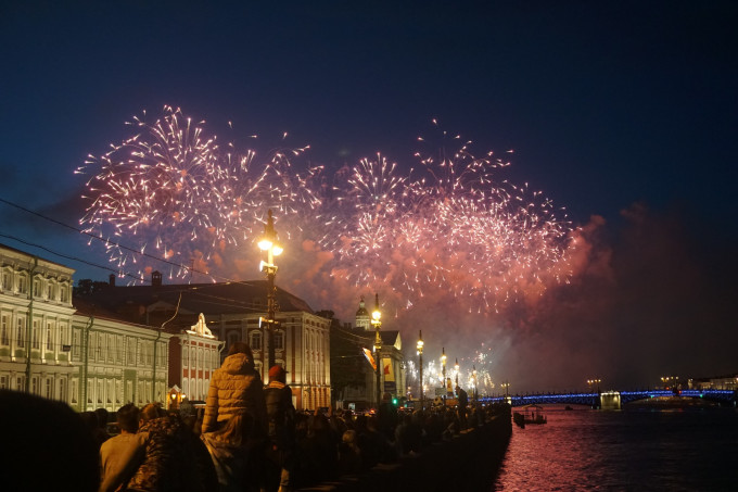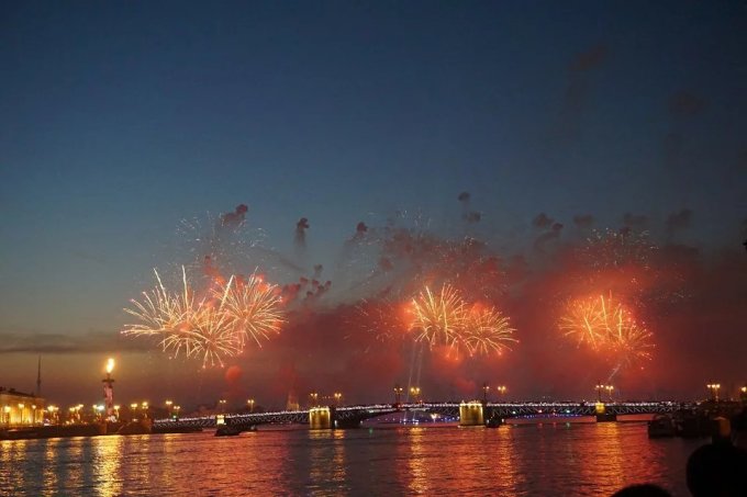 想要同时拍到烟花和红帆最好的选择就是,提前去冬宫桥那里排队,或者彼得要塞附近。