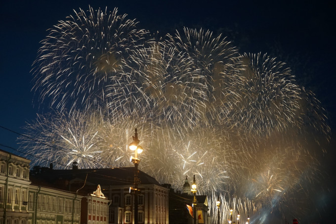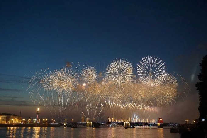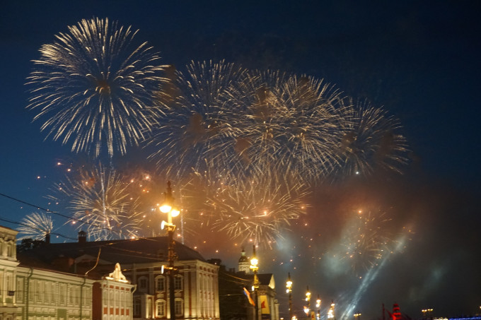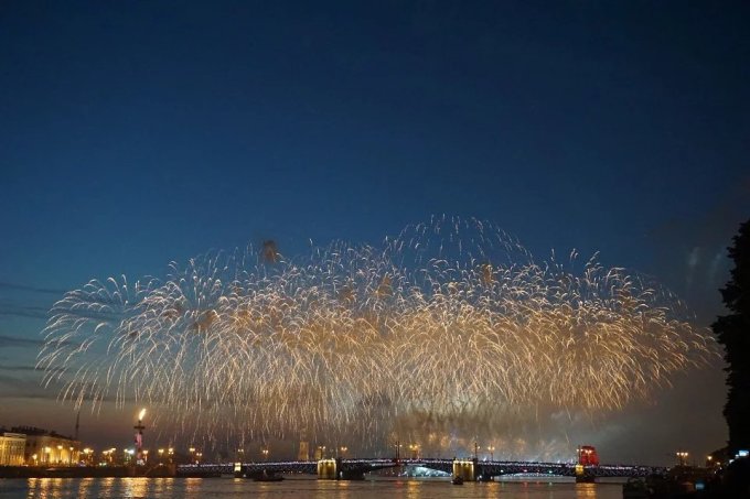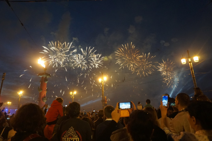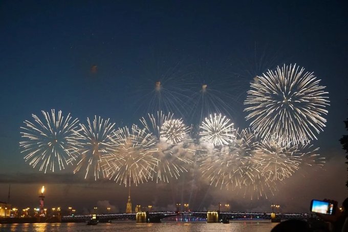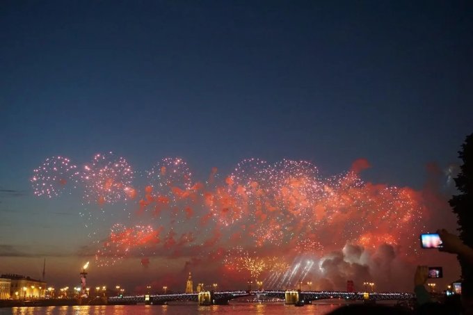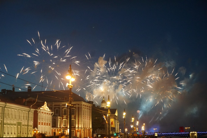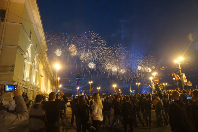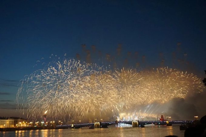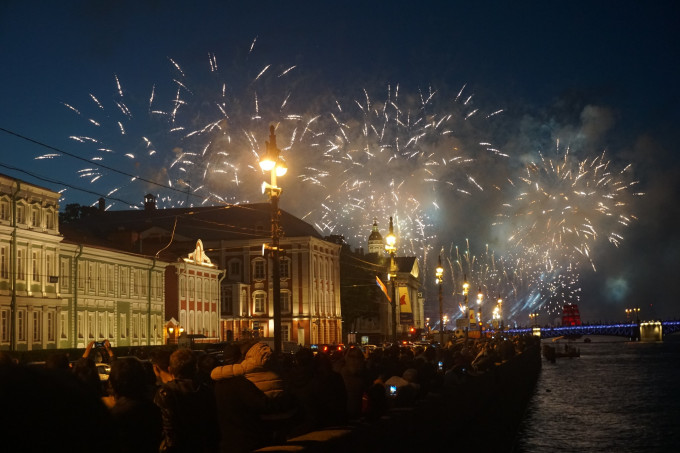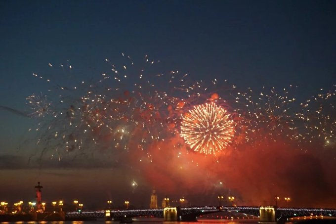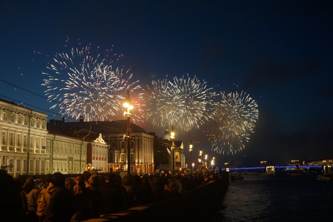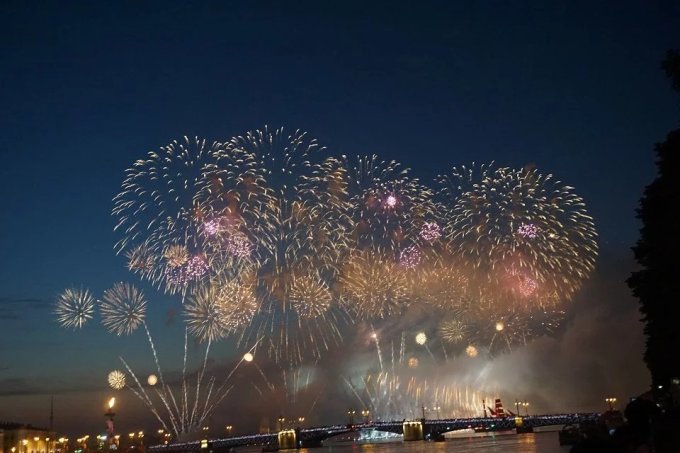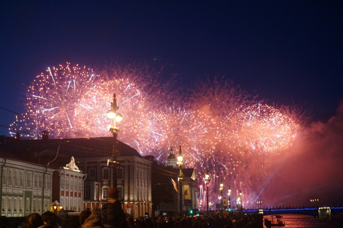 想要同时拍到烟花和红帆最好的选择就是,提前去冬宫桥那里排队,或者彼得要塞附近。