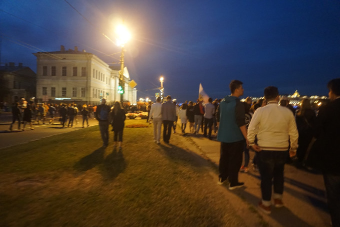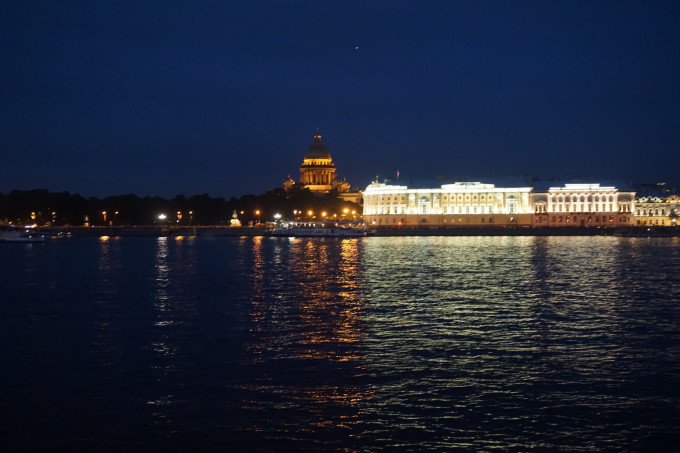 2018年,正好赶上世界杯,非常热闹了,提前几个小时就封路了,我们只好走到涅瓦河岸边,回程的时候也是打不上车,话不多说,来看看今年的红帆节吧。夜晚的伊萨基辅教堂真的好美,红帆节烟花是12点40开始,为什么这么晚呢,因为12点,彼得堡的天才真正黑下来,6月22 日正好是极昼,所以天要黑一些放烟花才好看,其实还是没有全黑,瓦西里岛这边还是黑天,而冬宫桥另一边已经开始亮了。