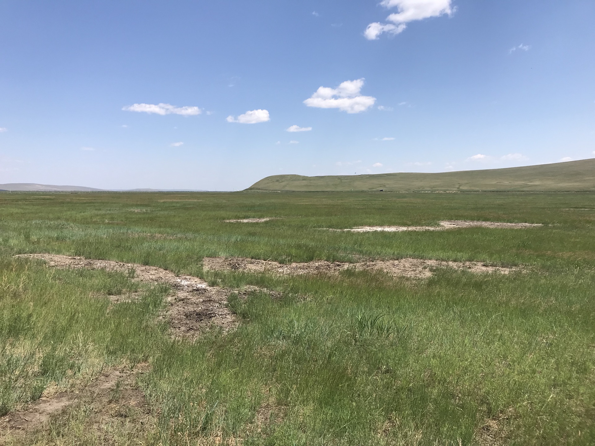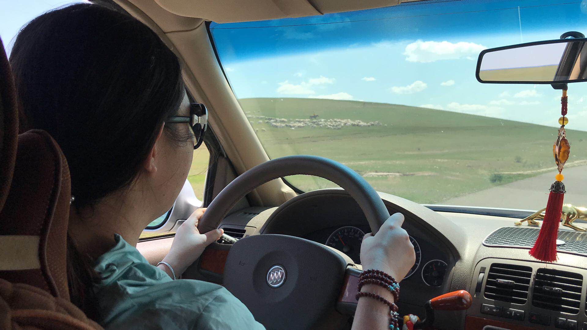 随后的事情,就真的厉害了。大概是半夜叫醒导游的后遗症,他让我开车了,我也体验了一把在辽阔草原沿着边防公路开车的感觉,刚开车的时候,把所有人都吓到了,我开车就是这样猛。关键,在导游心惊胆战的时候,我问了他一个问题“如果撞到牛会怎样”,我不想知道他当心内心的阴影面积是多少。过了几秒,他说“不知道,反正我没撞过”“那你想试试吗?”……这里的道路和上海完全不同,有高有低,上海都是平地,所以超车不用看是不是在坡度上,另外一点不同的是,这里要超过旁边车一定距离才能变道进去,不然视为没有素质,不像我们上海,因为车多,所以一点点距离都在变道,不然永远别想变道了。可怕的是,一车人在开始的惊吓后,都安安稳稳的睡着了,是的,我们上海人的心也像草原那么大。在草原上开车感觉并不好,会想睡觉,因为开车的风景都是一样的。终于,在满洲里的牌子下,导游找到了机会说旁边有厕所间叫我下车,其实并没有厕所,他重新把握了方向盘。