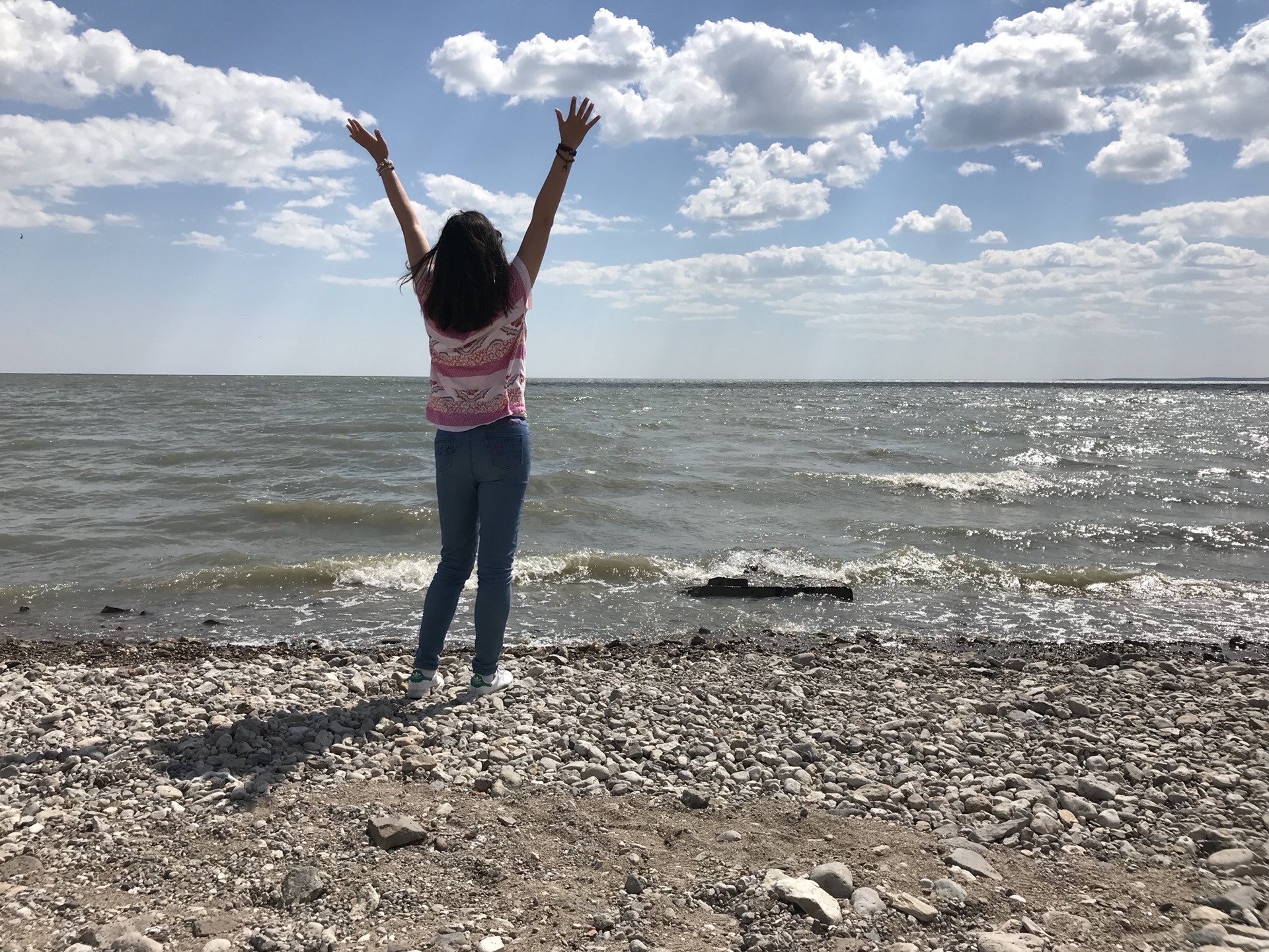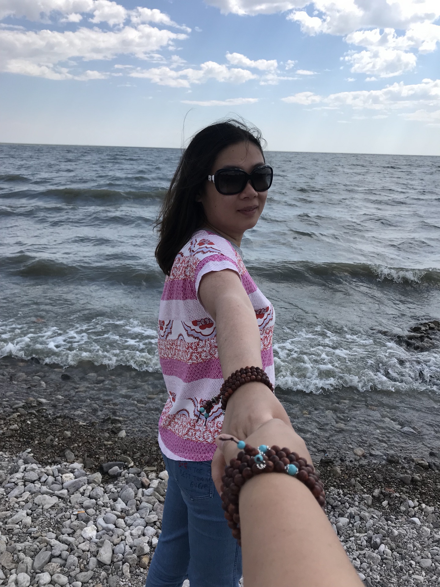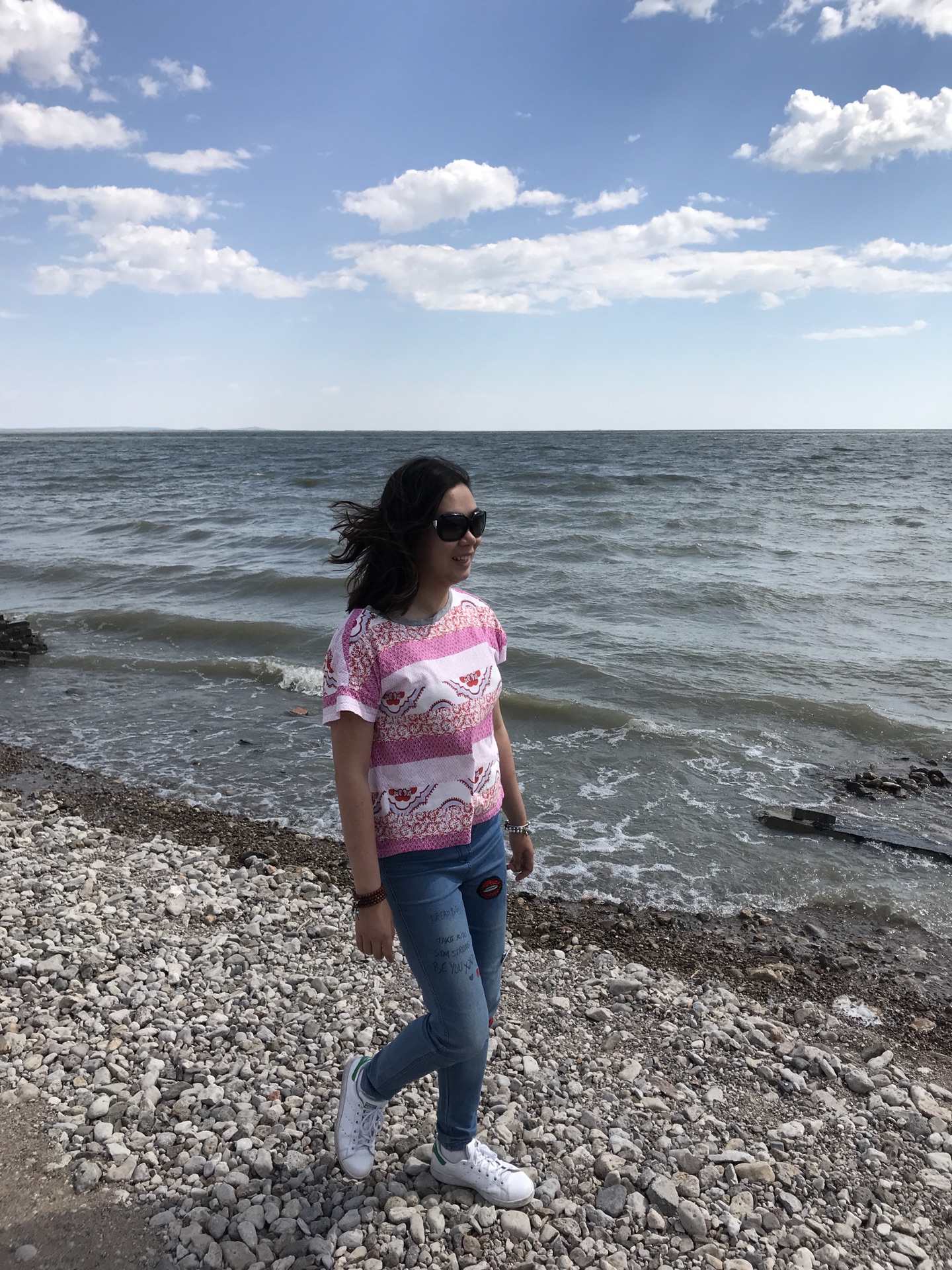 进入满洲里,看到了一个游乐场,里面的建筑很漂亮,都是俄罗斯风格,此时我都尿急了,导游还开玩笑,说旁边有个厕所。我欣然,随后他说,可是我们不路过,你看,我们往旁边开了呢。这是赤果果的报复吧!终于,到了呼伦湖,像海一样的湖,有浪,辽阔,只是湖水有点黄。我就是喜欢水,海边拍照我最擅长了,于是在湖边各种摆拍。内蒙古的白天特别长,这样一圈逛好,天还是亮的,后来,我们去了国门,大家都只想在门口拍拍照就完事的,出于种种原因,最后还是进去看了看,热的受不了,太阳直射,没有一点遮荫的地方,我们四个人在出景点的时候疯狂购物了一把,买了俄罗斯各种零食,导游看到我们也是醉了,本来说好满洲里有个什么购物街,最后也没去,不去也好,节约钱。可是这样一晒,本来就梦游的导游是真的倒下了,看来平时健身房不是白去的。