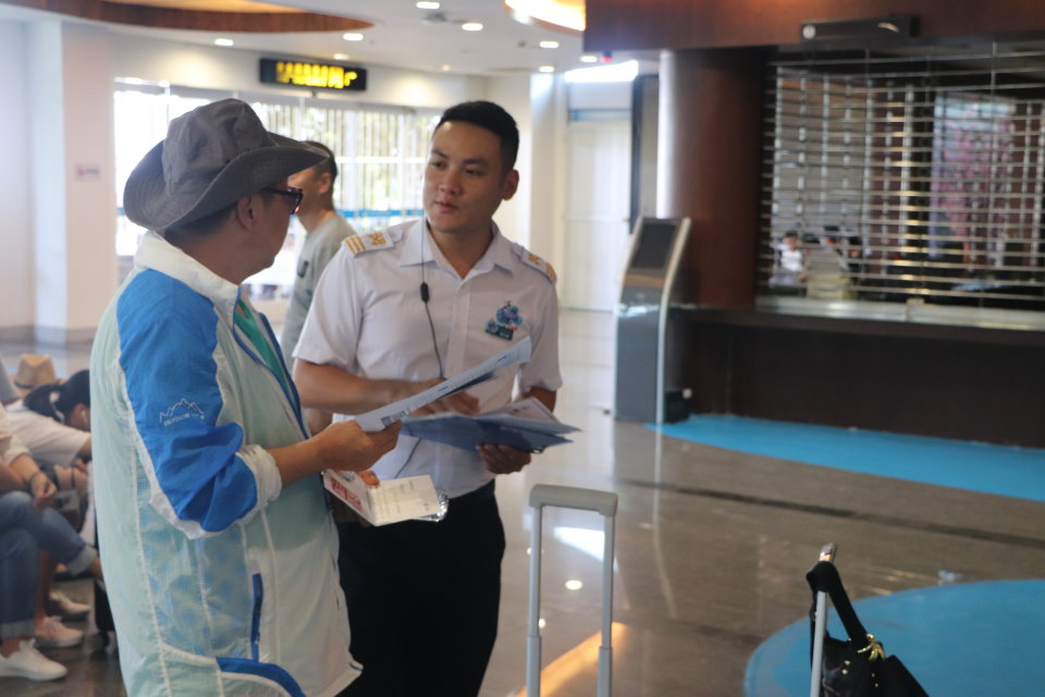 海边的“国际邮轮港”并不大,下车进入院子,前往大厅,先过安检,之后就有工作人员引导我去所在组别的位置上等候。我们这一组,是12个人。