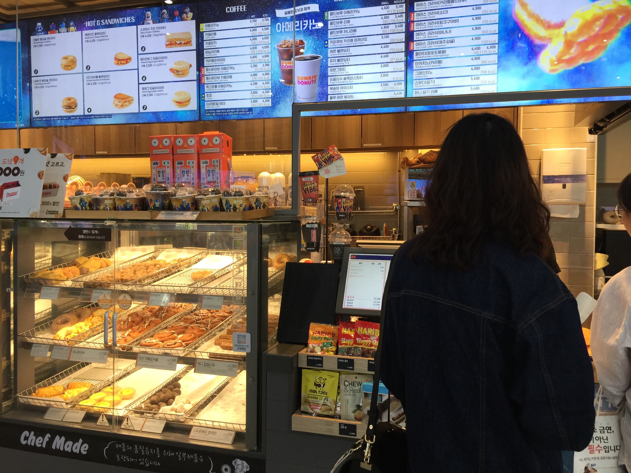 这是个全球甜甜圈连锁店吧,是我们好几天的早餐打发点。