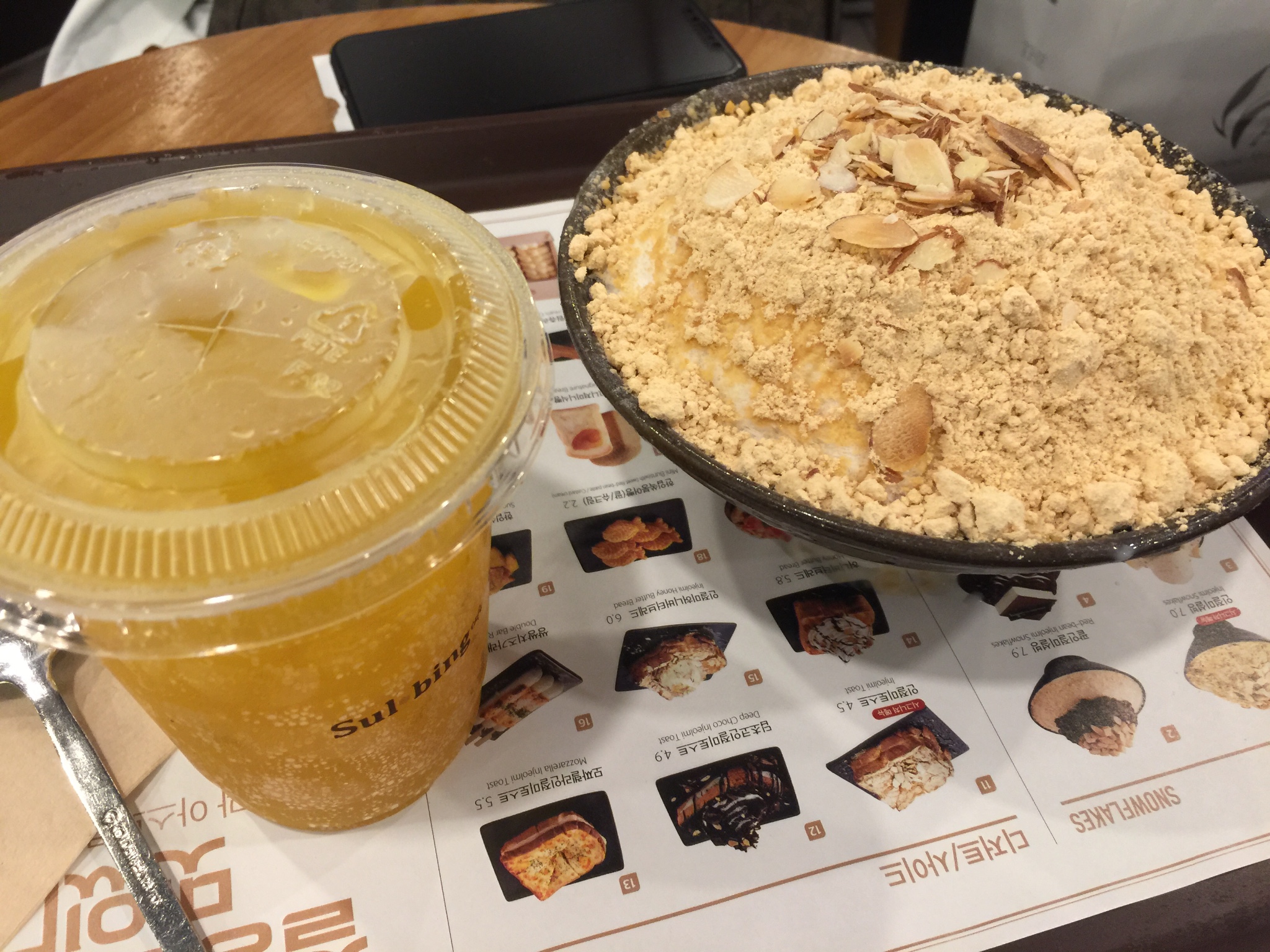 我说:不爱吃冰的我点的两杯果汁的都超棒,明洞的是芒果苹果,林荫路的是血橙。