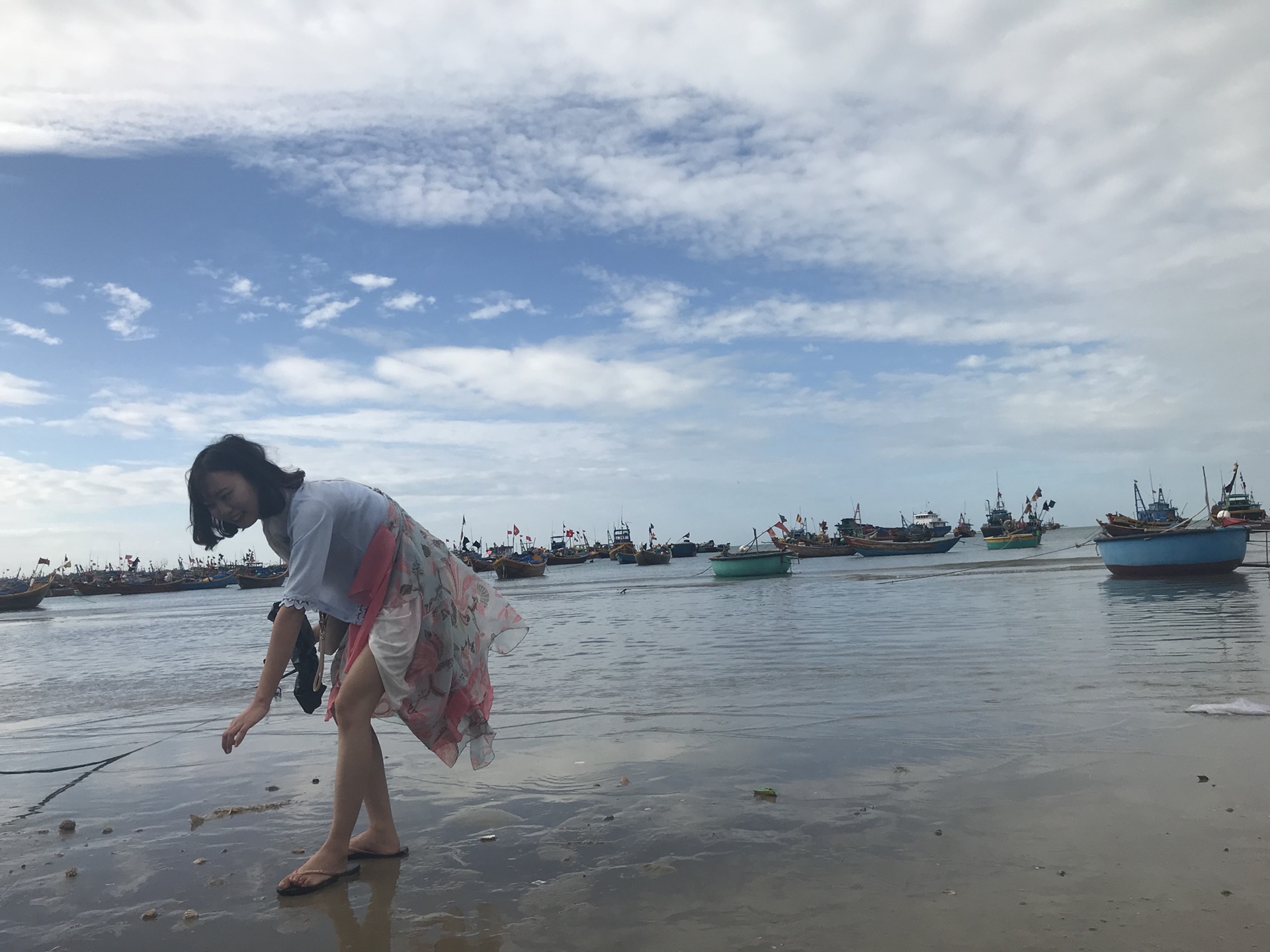 前一天晚上,在酒店边的旅游向导店定了一辆商务车,准备第二天一早5:30包车出发前往白沙丘看日出,7:00-8:00转到美奈渔村的沙滩边捡拾贝壳,再前往仙女溪,最后返回酒店。午休后,下午定了两人3小时的美奈海滩风帆冲浪学习(1对2,两小时,70美元/人)。
