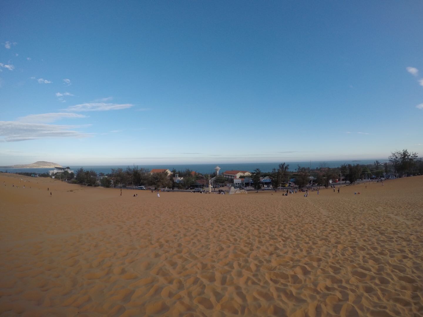 到达美奈已是下午,第1站选在红沙丘,临海的沙丘,并不如其名般“红火”,少了海边的清凉,多了人影攒动的燥热,有种让人大跌眼镜的赶脚。喏,下图,“红”沙丘,与海隔着一条公路,算是半海半城市的沙丘?