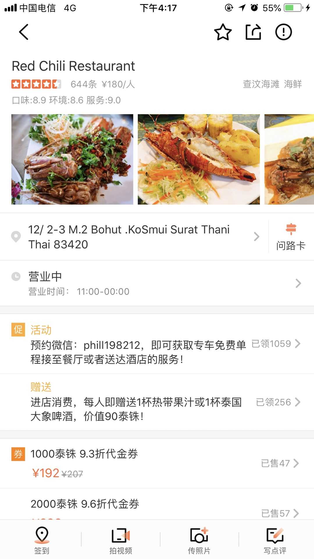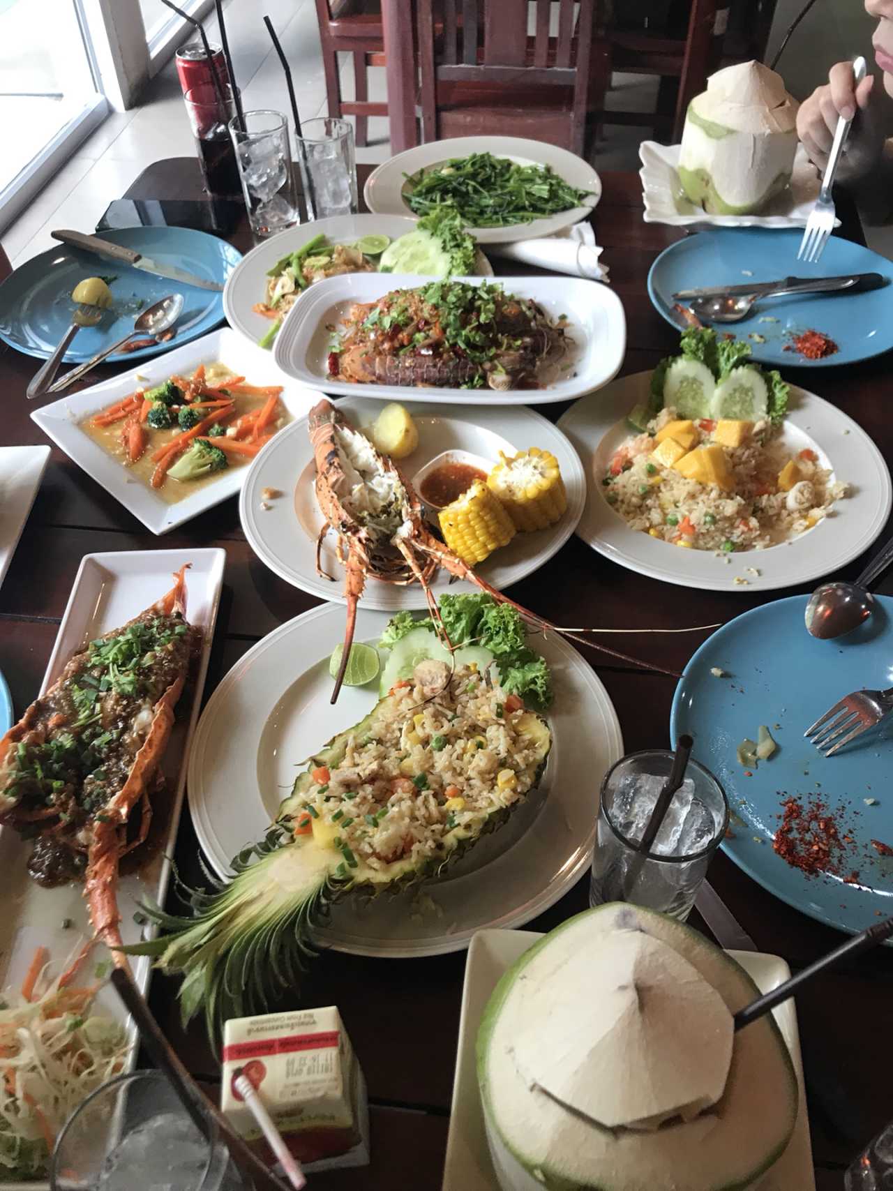 到酒店我们洗洗刷刷就出门吃苏梅第一顿,当然就是海鲜啦~~~看了好几家点评,找了一家评价相对不错的店,开启了我们的美食之旅。这家店是可以自己去挑龙虾和螃蟹的,总的来说还是比较新鲜的。反正岛上的店会让你选择活海鲜还是冷冻的,价位也是不一样的~我们这一餐大概是2900泰铢。大概就是下面那家。