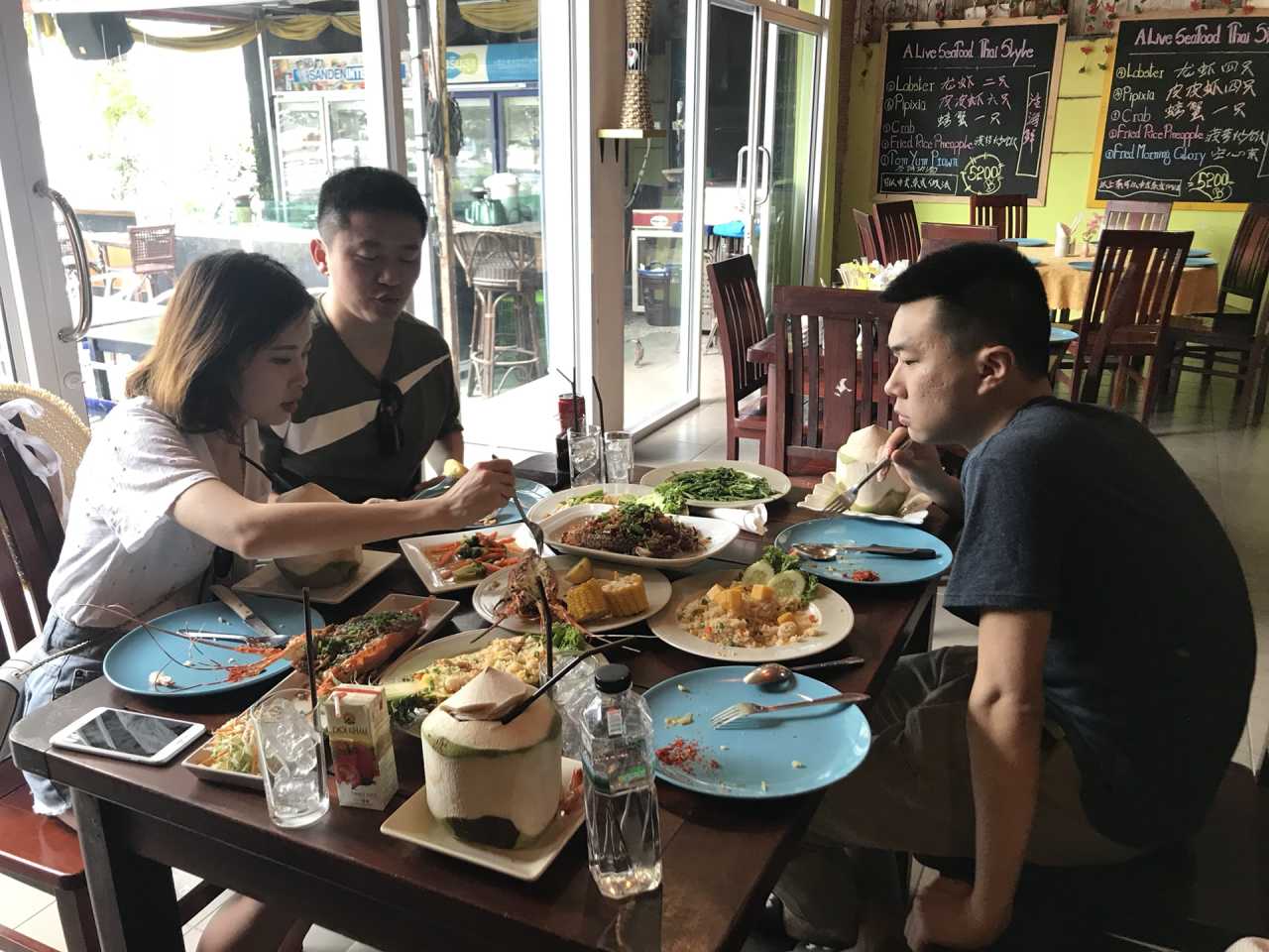 店里有一个会说中文的泰国小妹,态度很好。很平价,还可以砍价,这一顿一千多泰铢。当然,对于别人很好的服务,还是不要吝啬小费,20泰铢就可以让他们很开心的。看看认真砍价点菜的我
