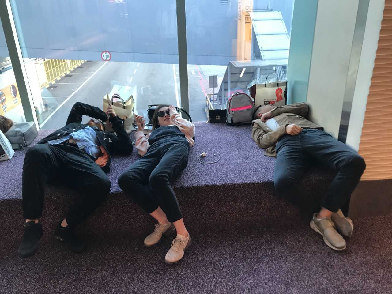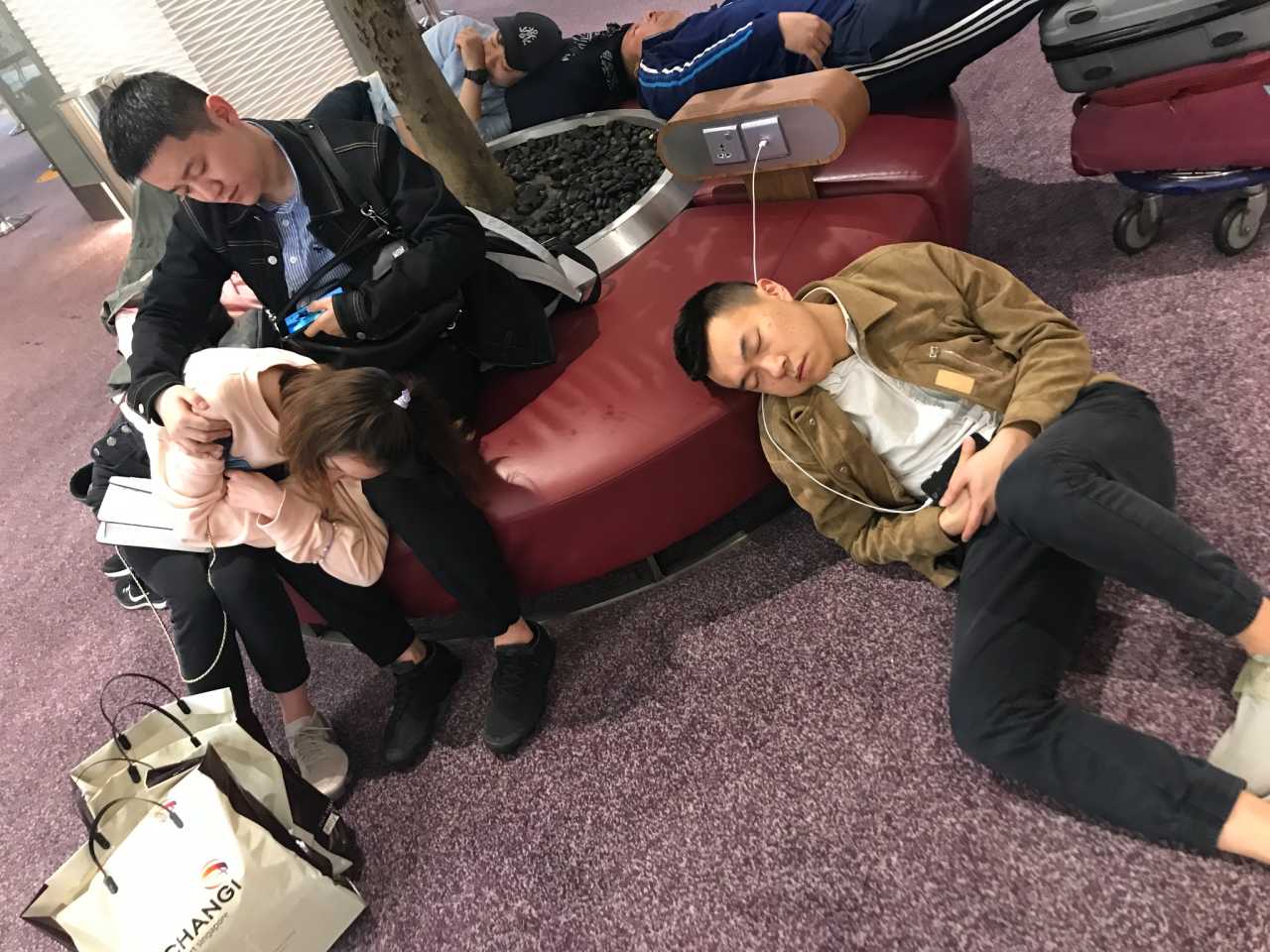 逛到快7点,大家实在累的不行了,就在候机大厅席地而睡,是不是看起来好造孽。