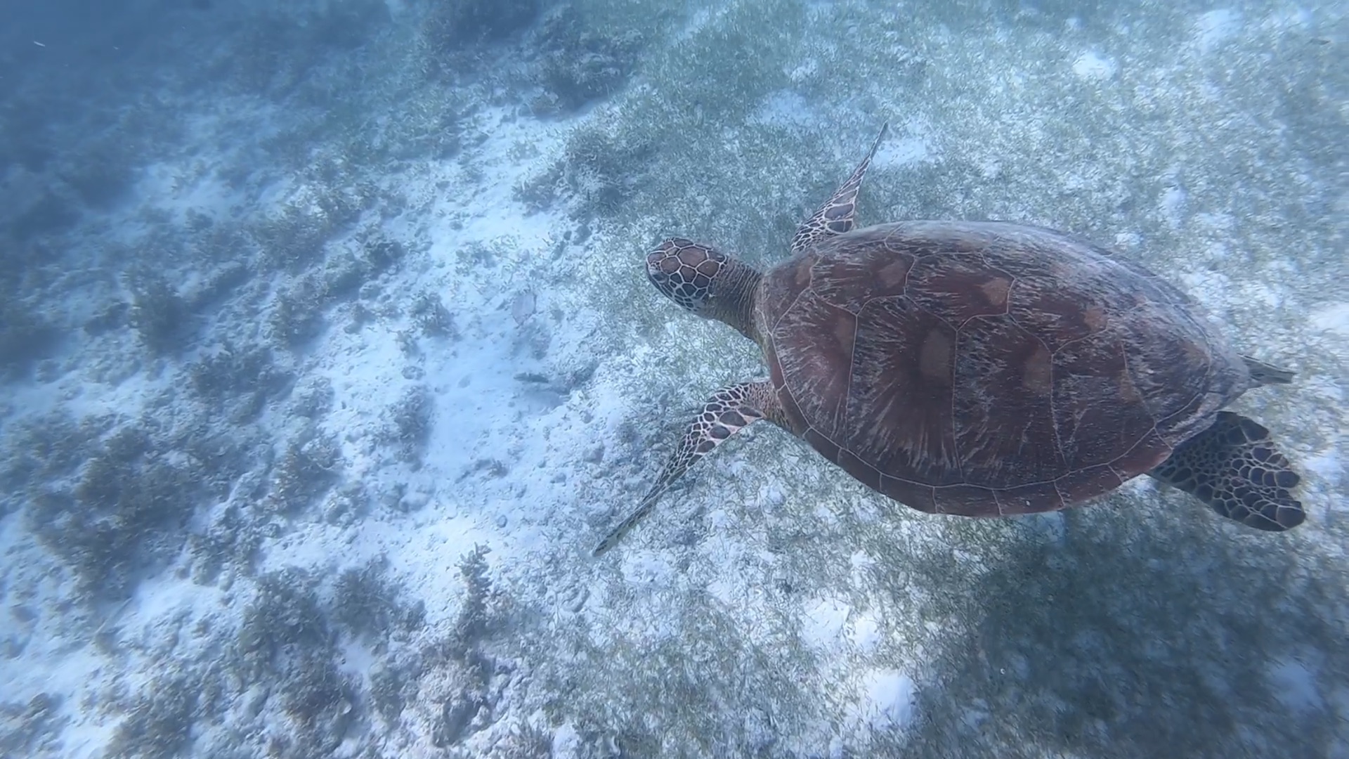 小黑先带我们去找海龟,这里的海龟有点怀疑是圈养的,因为就在他们带去的位置,下船就能看到在海底慢慢的游来游去,理都不想理我们。