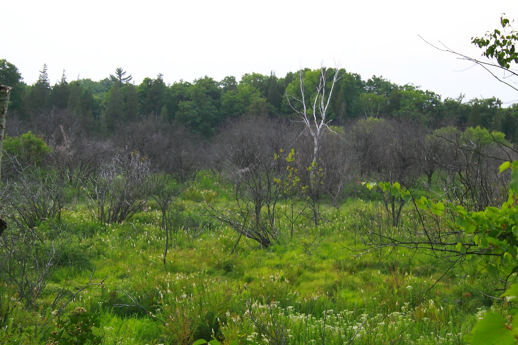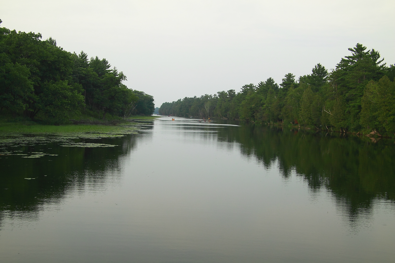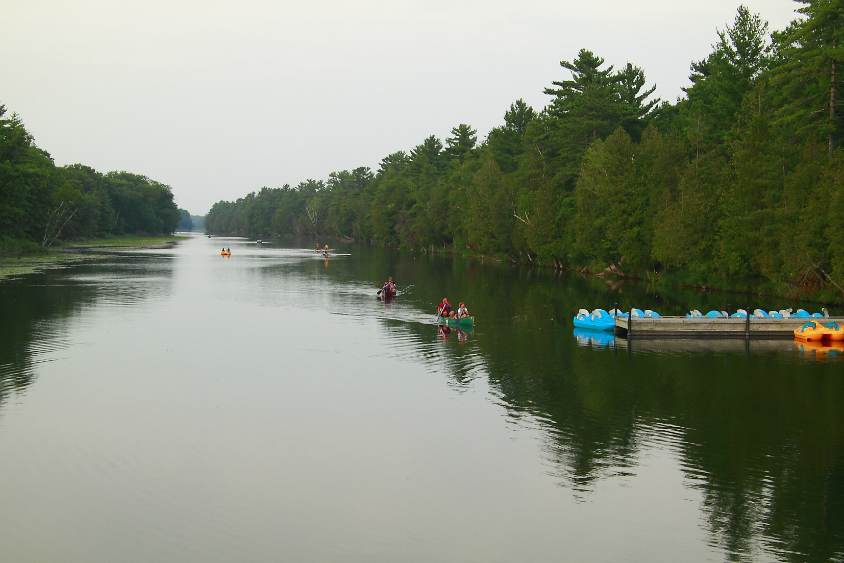 旧奥塞布尔水渠(Old Ausable Channel)水流缓慢,从公园中间穿过