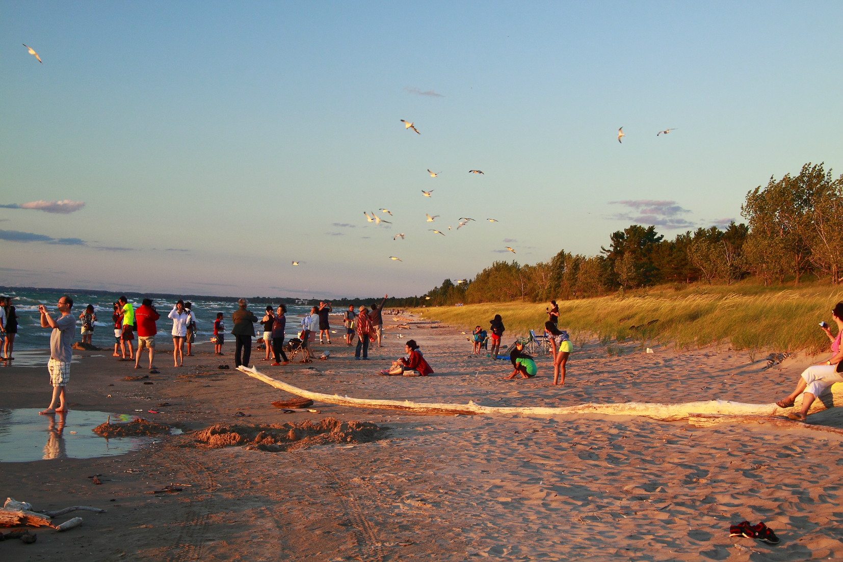八月初的长周末,和朋友同事们举家共50余人去了位于休伦湖畔的松林省立公园(Pinery Provincial Park)露营3晚,此公园是很不错的游泳消暑看日落的地方。