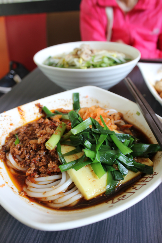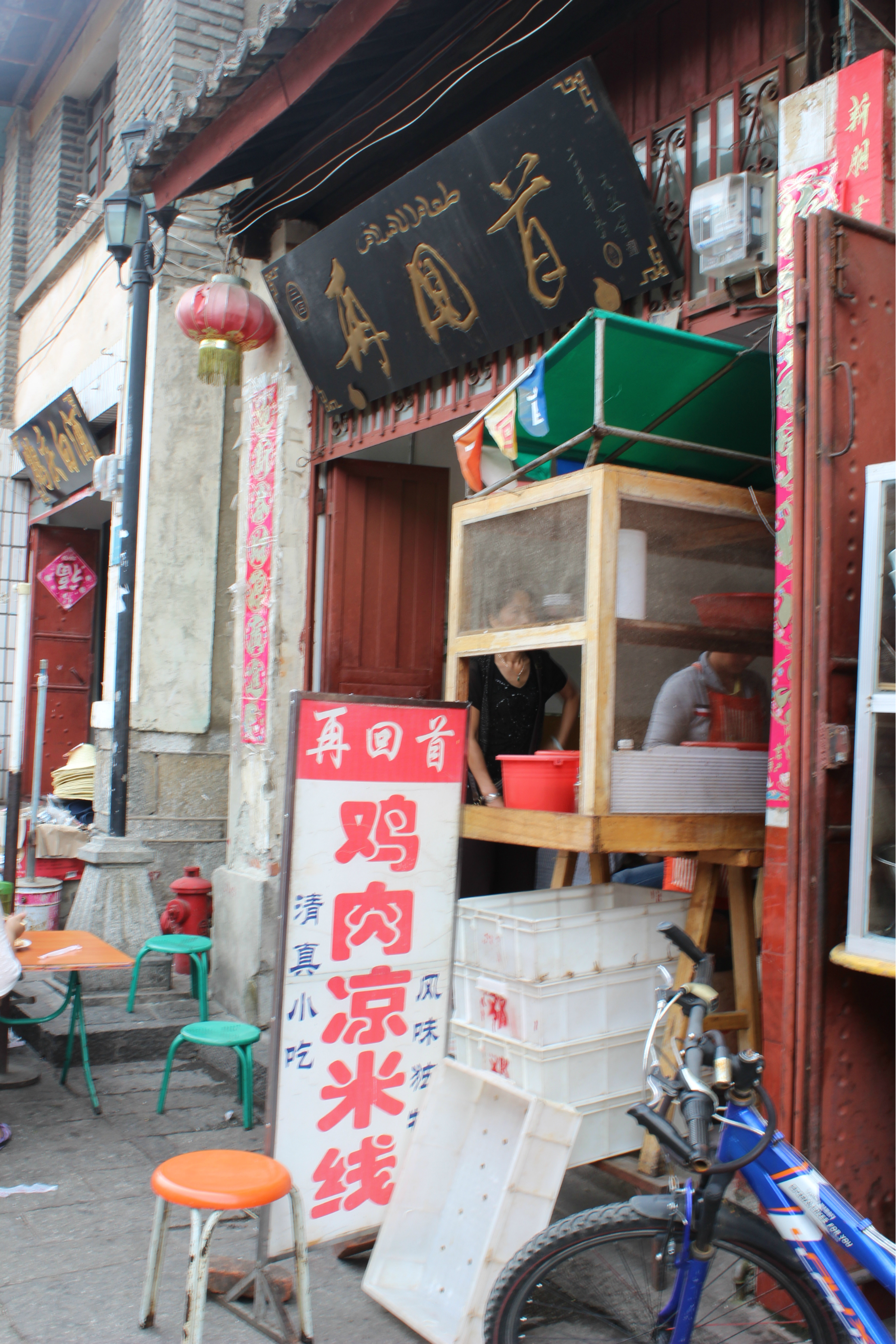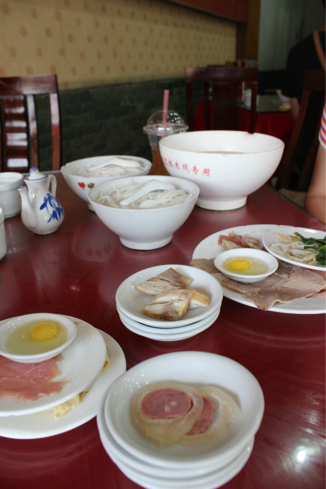 大名 鼎鼎的“再回首 ”凉鸡米线,连着有三家,一开始没敢进,后来听当地人说都是一个老板开的,好吧,选了一家有空位子的,凉鸡米线分大小碗,分别是5.0和6.0,真是便宜又好吃啊,很多本地人也来吃的。