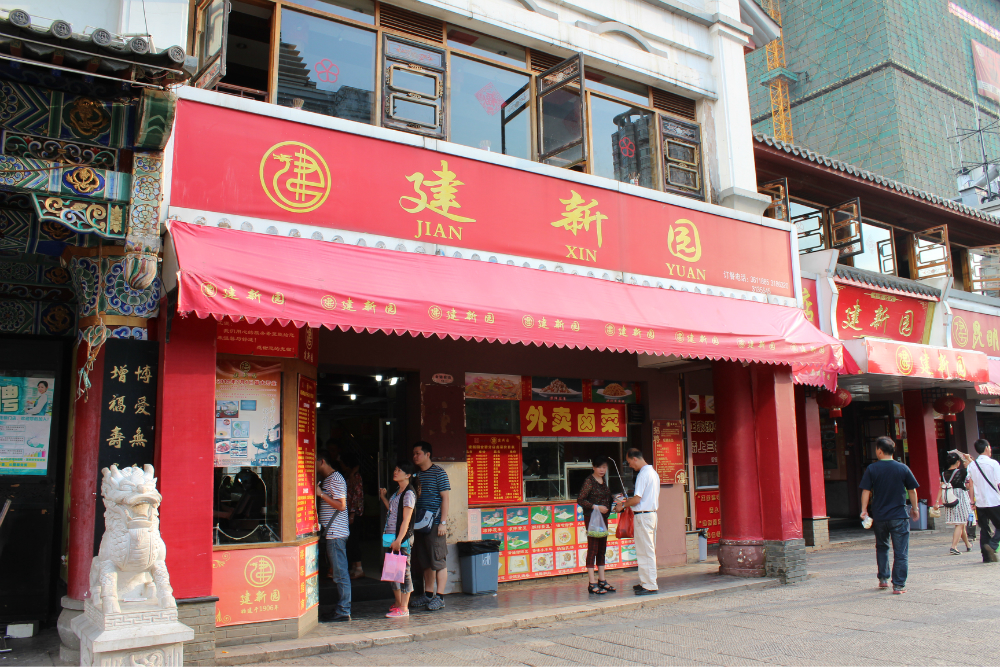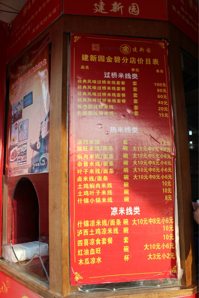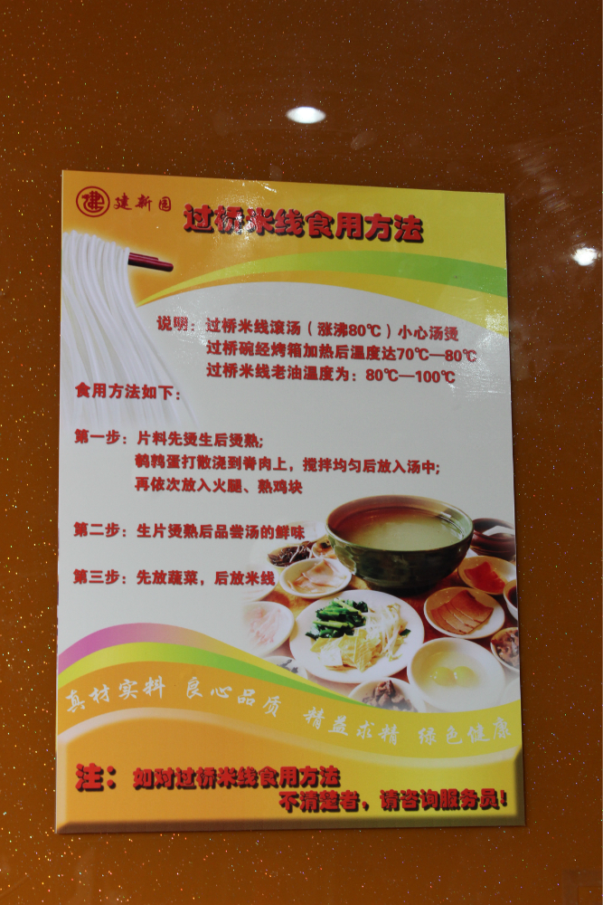 吃:到了昆明 怎能不吃过桥米线?哈哈。建新园 和桥香园是很有名的两家连锁店。这次选择了建新园 金马店,米线也分很多种,普通的在一楼,过桥米线在二楼,感觉很像以前的国营食堂。