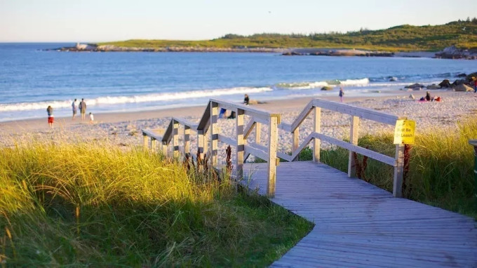 第三站:从哈利法克斯约20分钟车程我们路过水晶新月海滩省立公园(Crystal Crescent Beach Provincial Park),这里是新斯科舍省有名的海滨度假胜地,即使是夏季气也比较凉爽宜人,拥有绵延的细腻白沙滩,人们脱掉鞋子,惬意地漫步其上。