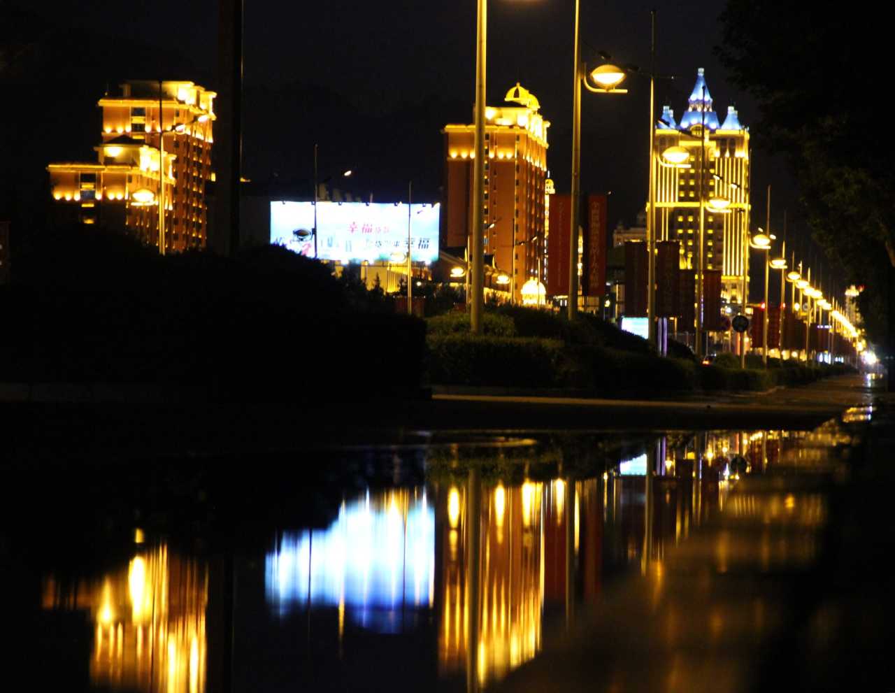 从婚礼宫往市区方向走了二三十分钟,看到的一个水坑,这是傍晚下了场大雨的杰作