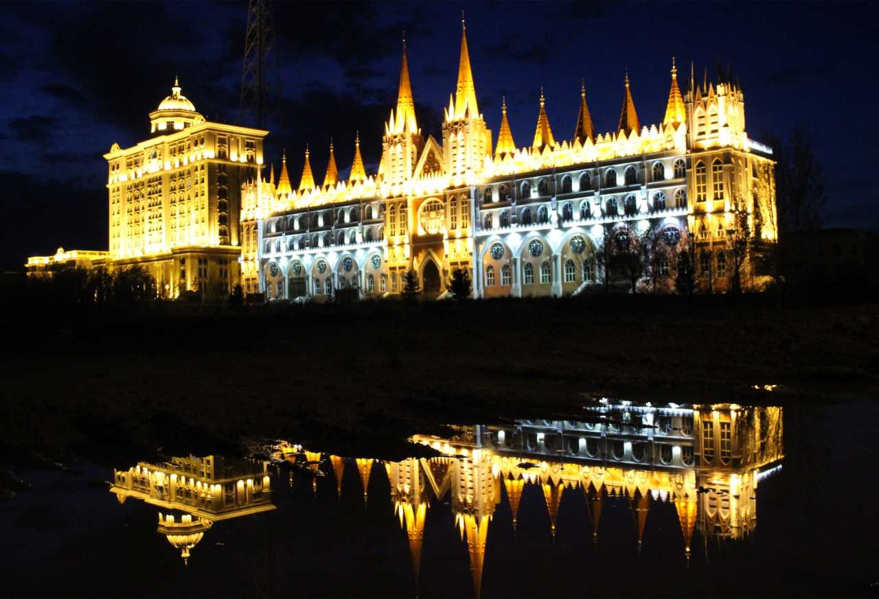 这是套娃酒店右面的不知名建筑,甚是富丽堂皇,与套娃酒店中间有景观树隔开,从套娃景区门口需要步行十分钟左右吧