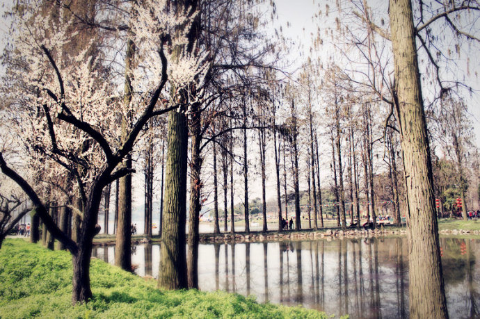 梅园还是挺大的,我大约转了2个小时还是没有转完,在湖边坐了会,看看来往的人,放下其他的一切。