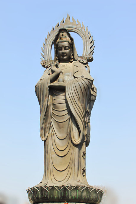 下面的菩萨姐姐应该是才请过来的,在寺院后面镇守着,其实这个观音菩萨很高大的,我的身高估计还不大他的莲花下面。我是站在很远的地方才拍到全景的。