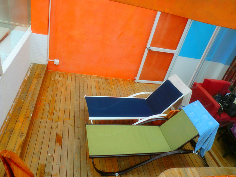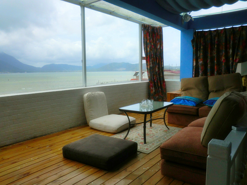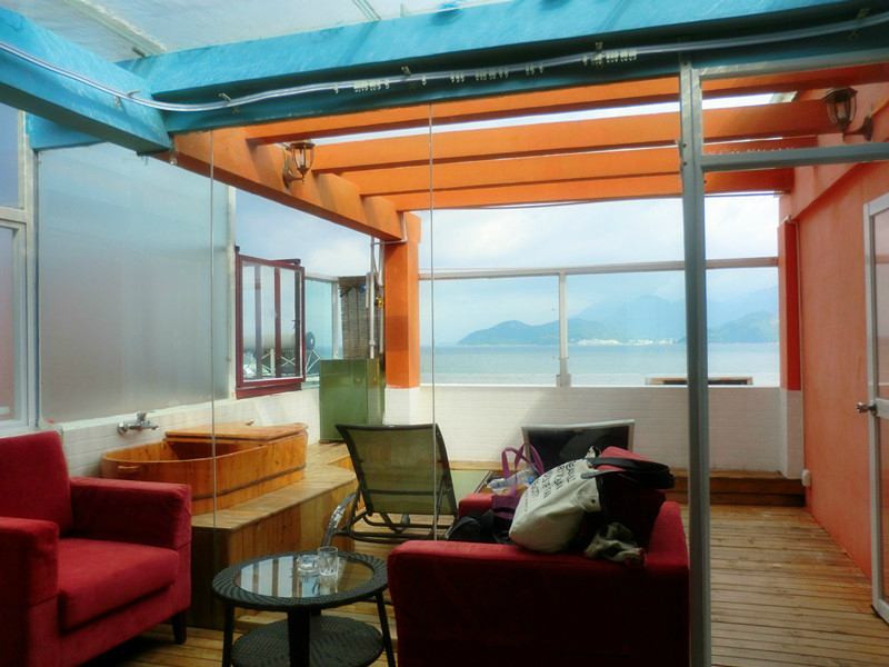 阳台是半开放式的,躺在这里可以听着海浪声、吹着海风