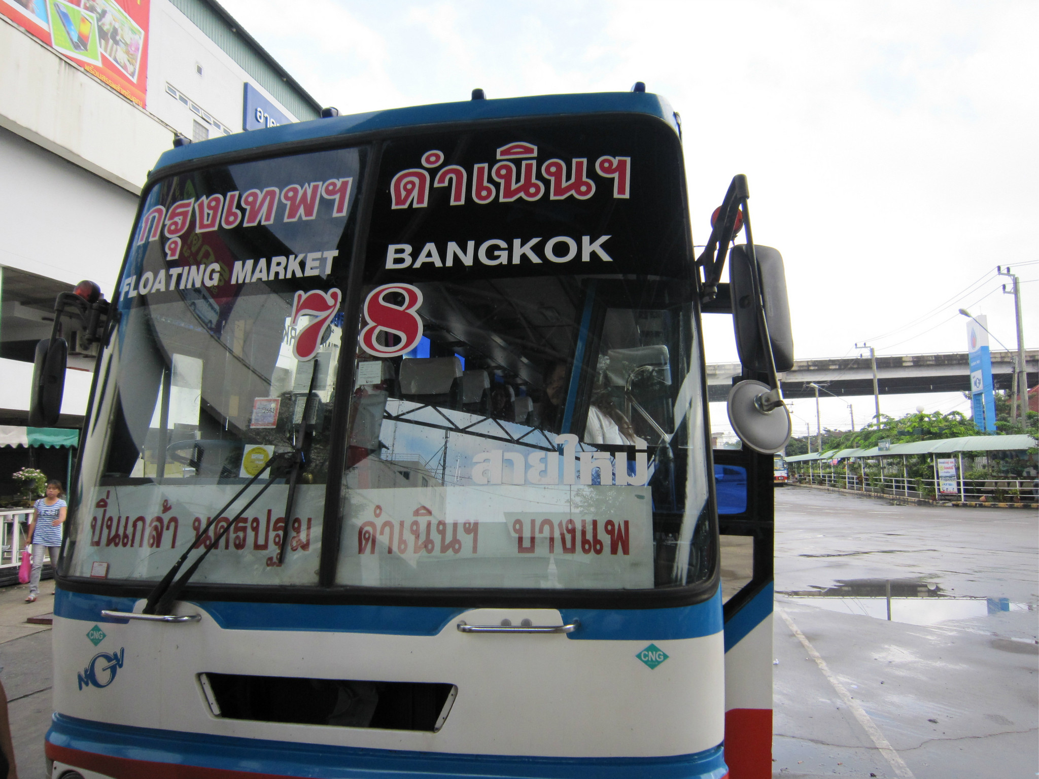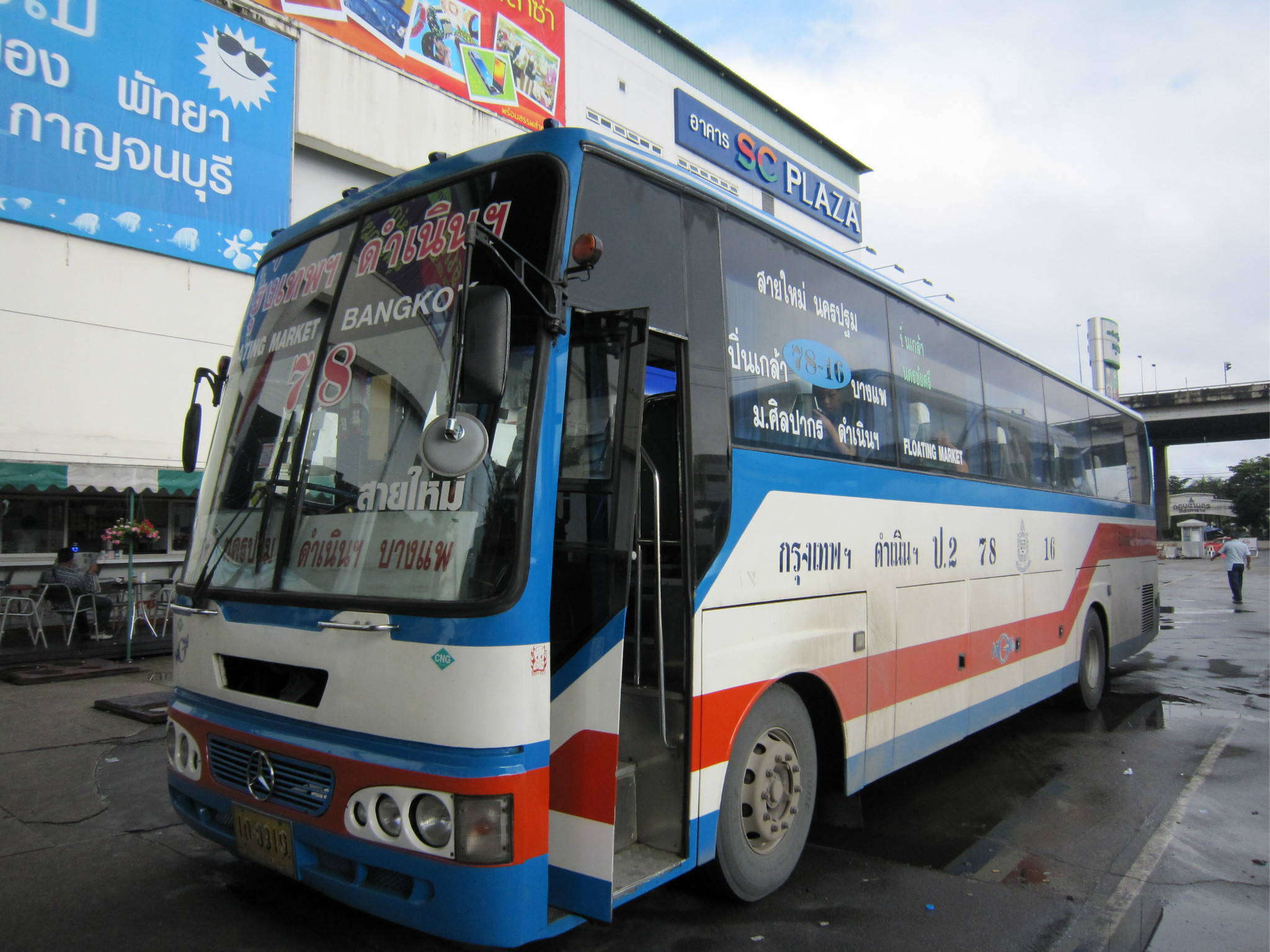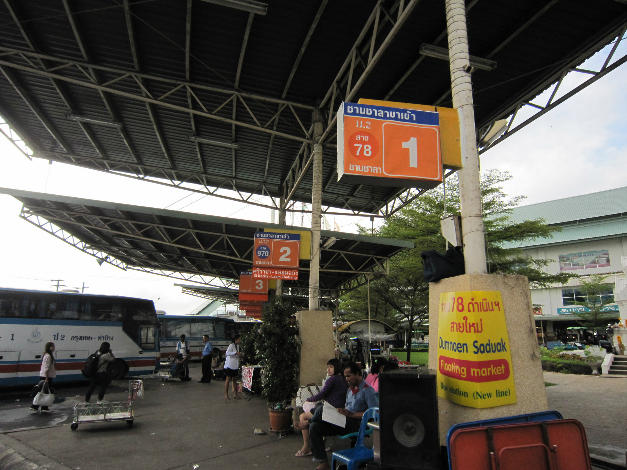 方案二:自己搭公交车前往。在曼古汽车南站sadaimai有78路和996路直通水上 市场〔但是在该车站英语基本不通,后述〕。行程单程2小时。票价78泰铢。996最早的一班6.00发车,每20分钟一班。这是从别人的游记,以及lp上得到的消息,不知是否准确。